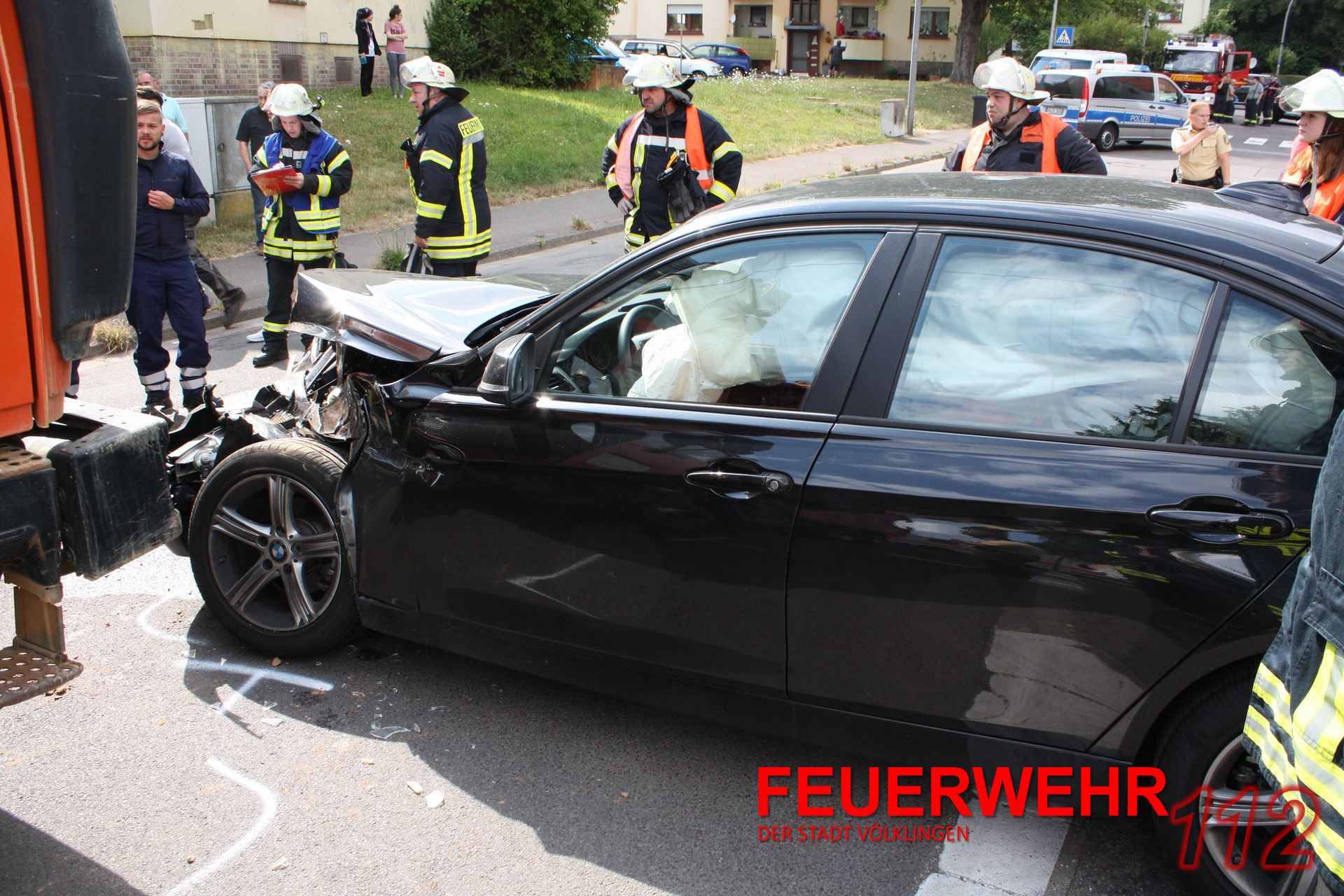 Im Kreuzungsbereich von Altenkesseler Straße und Talstraße kam es zu einem Verkehrsunfall zwischen einem LKW und einem PKW. Die Feuerwehr Völklingen stellte den Brandschutz sicher, klemmte die Batterie des PKWs ab und nahm ausgelaufene Betriebsmittel auf.