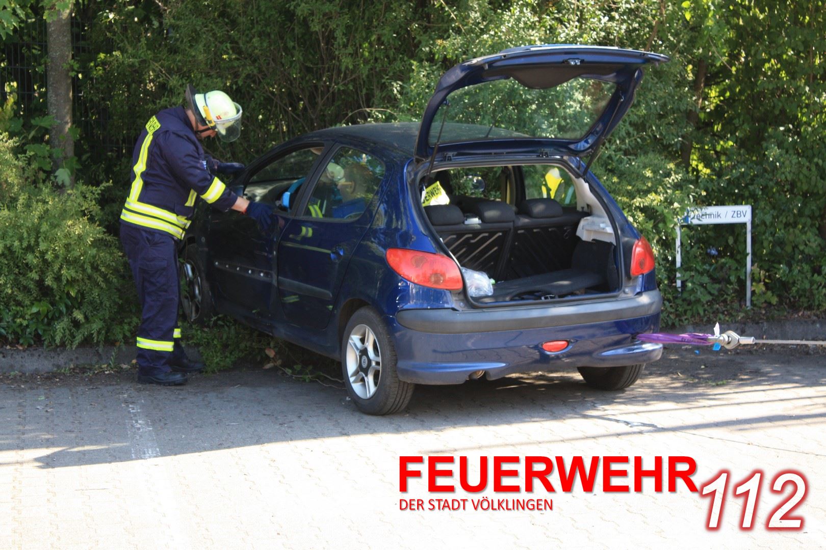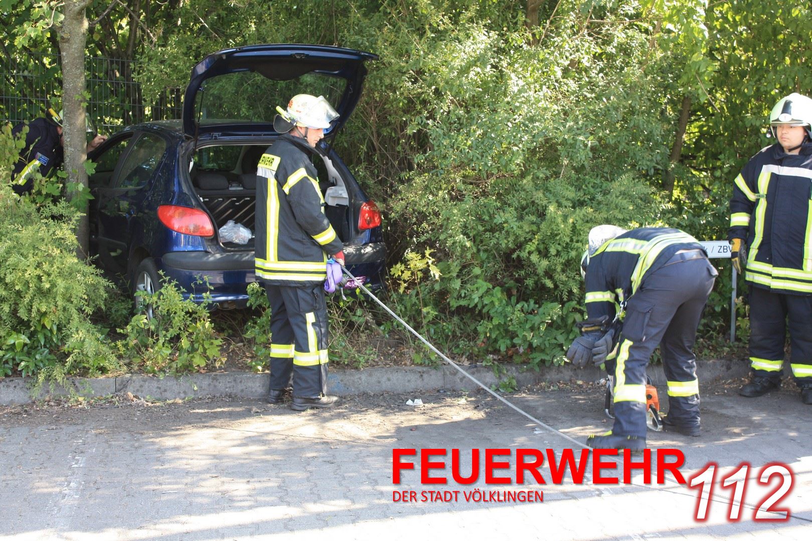 Ein PKW war auf einem Firmenparkplatz ausser Kontrolle geraten und über den Fahrbahnrand gegen einen Zaun gefahren. Die Einsatzkräfte zogen das Fahrzeug mit der Seilwinde aus dem Gebüsch, befreiten den Fahrer und übergaben ihn zur weiteren Versorgung an den Rettungsdienst.