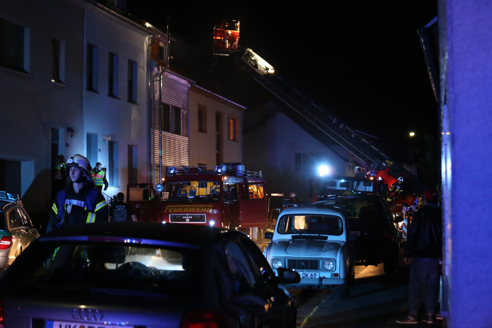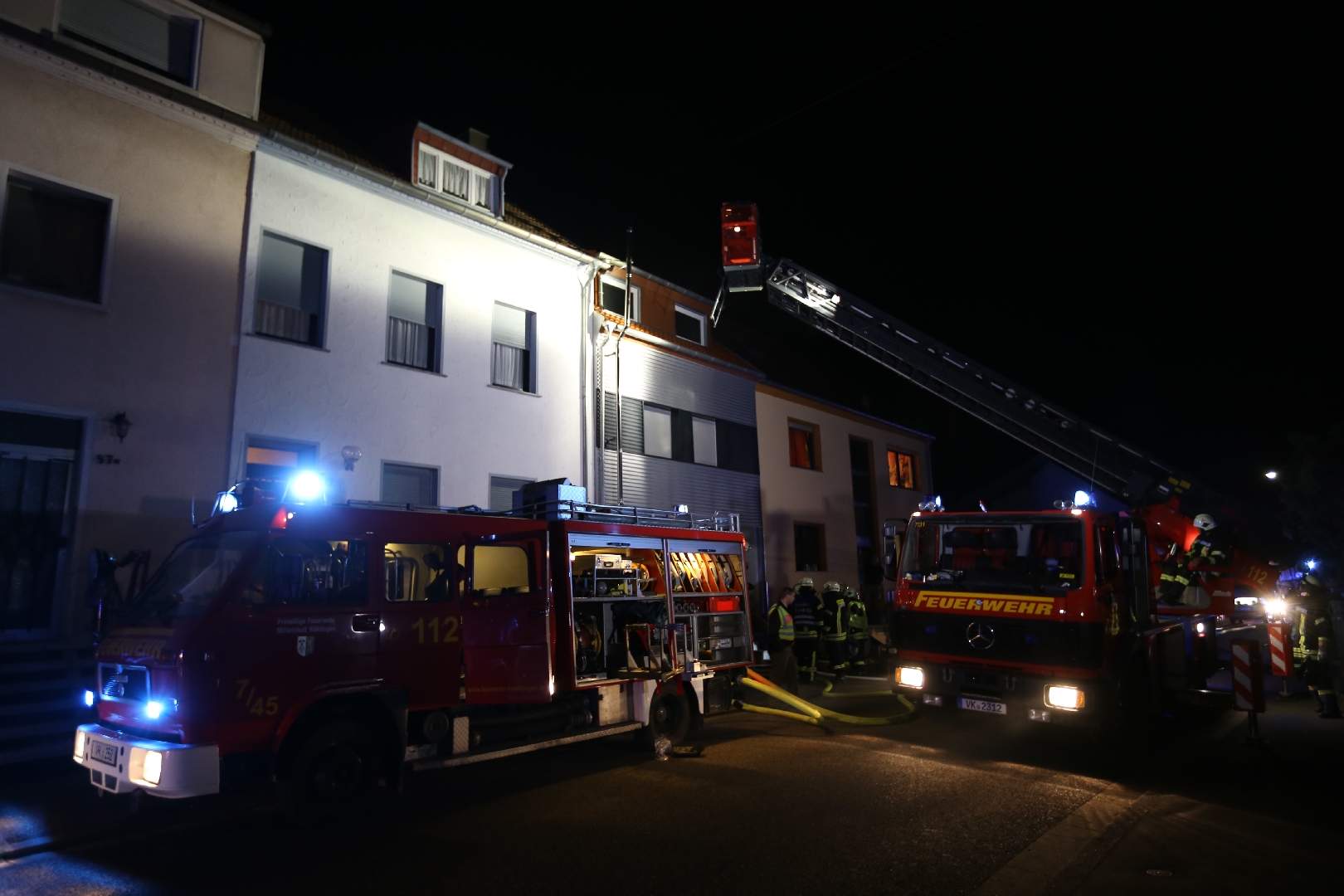 Bei Ankunft an der Einsatzstelle wurde dem Einsatzleiter mitgeteilt, dass sich keine Personen im Haus befinden. Ein Trupp unter PA begab sich mit einem âCâ Rohr in den Innenangriff und konnte dort den Brand eines Sofas feststellen das schnell abgelöscht werden konnte. Zum Einsatz kam hinter dem Haus eine Steckleiter, weiterhin wurde ein âCâ Rohr in Bereitschaft aufgebaut, sowie mit der DLK eine Anleiterbereitschaft hergestellt. Es erfolgten BelĂŒftungsmaĂnahmen auch erfolgte mittels WĂ€rmebildkamera eine Kontrolle des Brandraumes, MaĂnahmen waren hiernach keine erforderlich. Im Einsatz waren vier Löschbezirke, die Abteilung Atemschutz und die Presseabteilung mit 60 EinsatzkrĂ€ften und 12 Fahrzeugen. Auch das DRK, ein Notarzt und die Polizeiinspektion Völklingen waren vor Ort. Zur Betreuung der Nachbarn, wurde auch eine Einsatzkraft vom Kriseninterventionsteam tĂ€tig.Â
