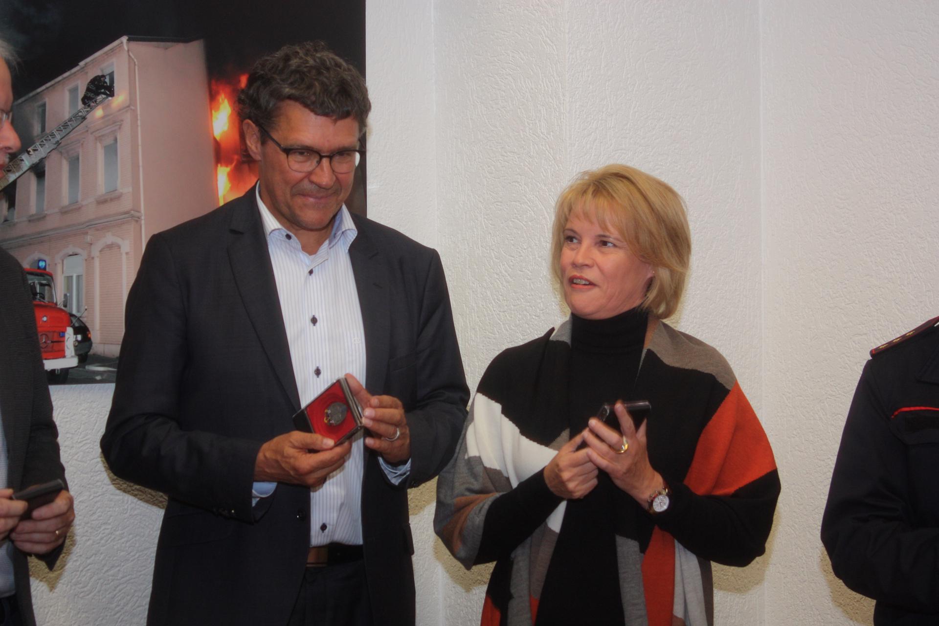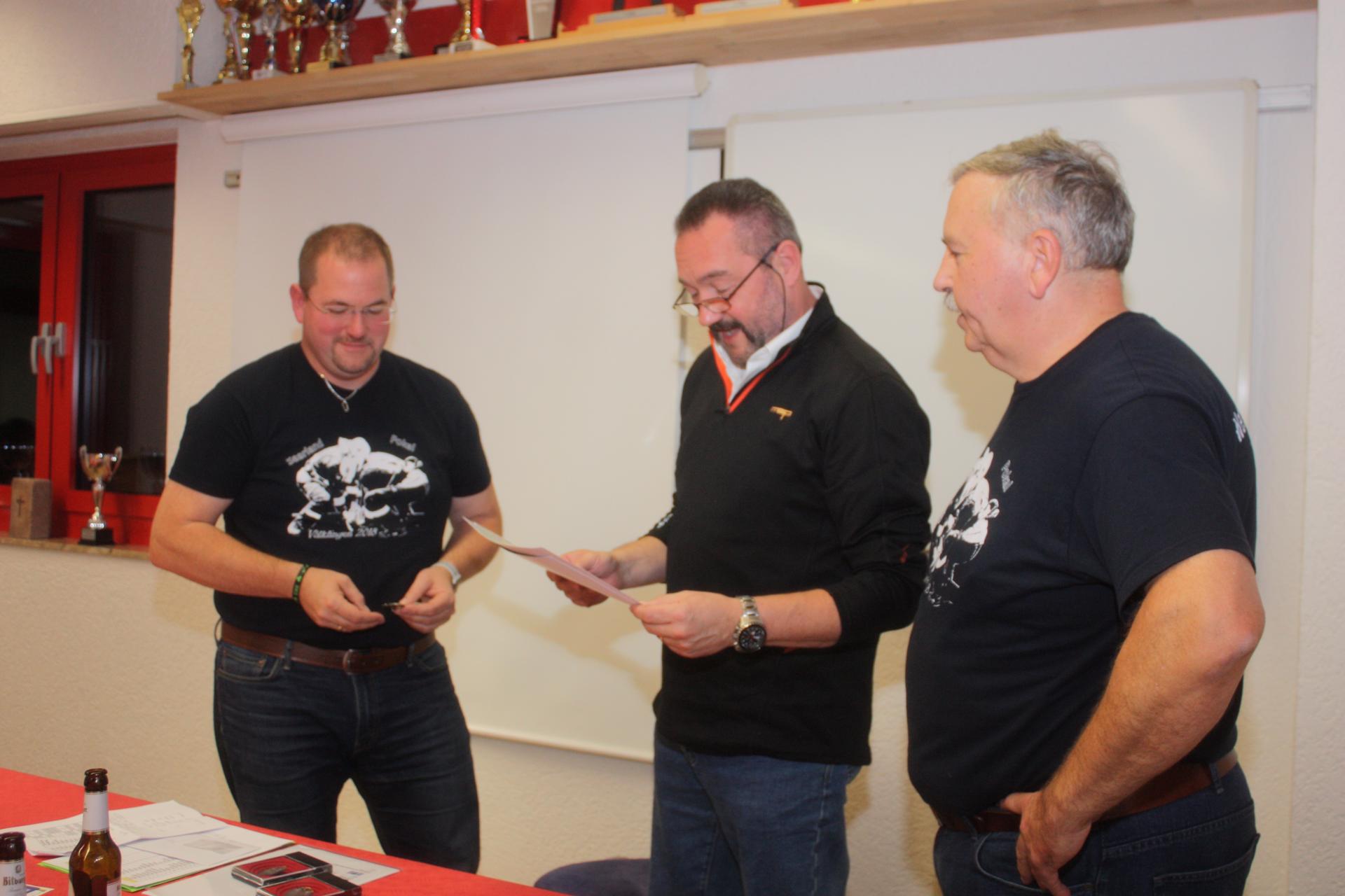 Rainer Eichenwald hatte diese Präsentation vorbereitet und überreichte mit Löschbezirksführer Thomas Roth und Stellvertreter Frank Zimmermann die fehlenden Abzeichen und Urkunden an die Teilnehmer. Besonders wurde Patrick Nacciareti aus Luxembourg gewürdigt, der bei einem Wettkampf kurzfristig als Gruppenführer einsprang, da diese Position von der Völklinger Gruppe nicht besetzt werden konnte.