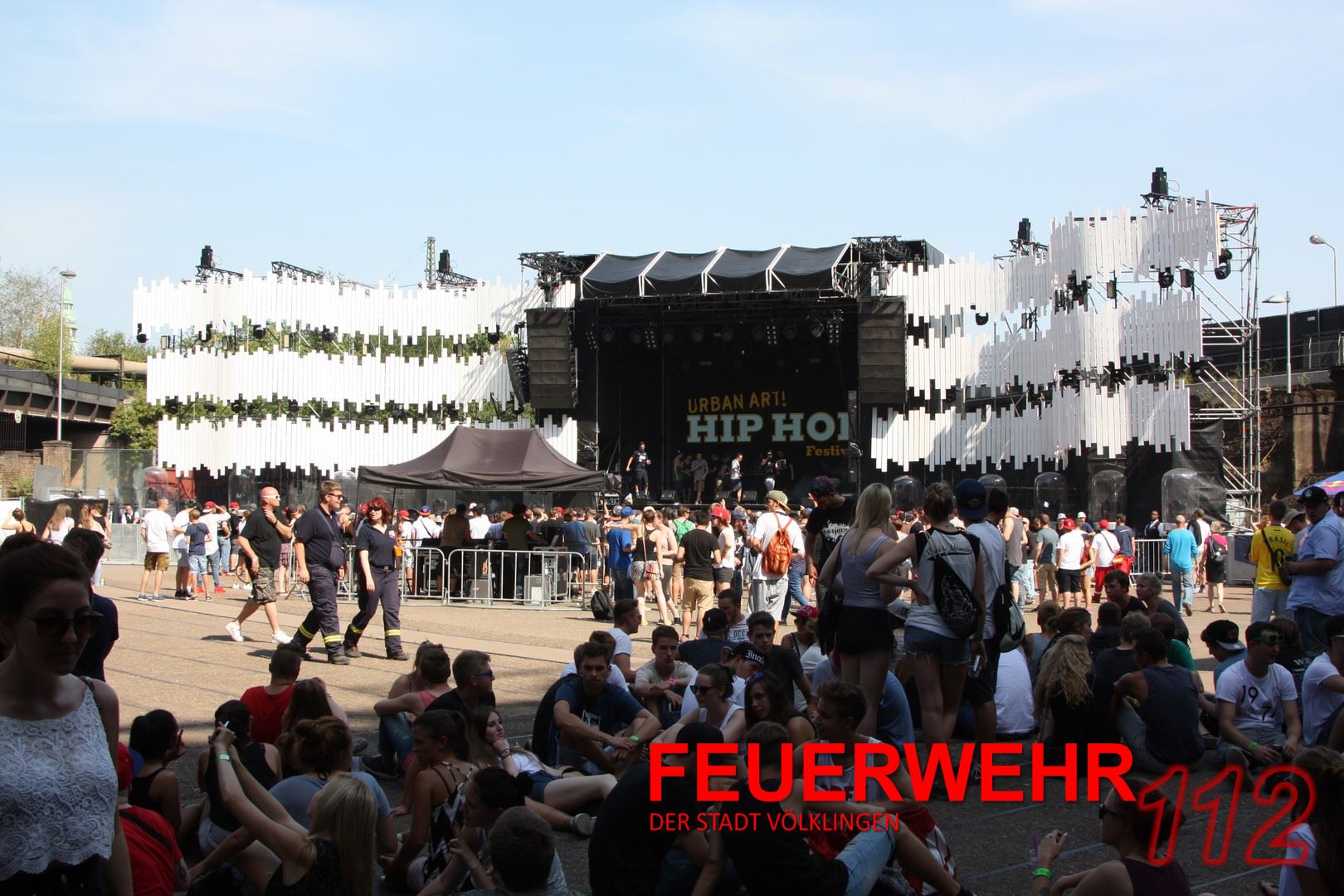 Am Freitag, dem 17.07.2015 fand zum ersten Mal das Urban Art Hip Hop Festival mit ca. 5000 Besuchern statt. Die Feuerwehr Völklingen stellte für die Sicherheit der Gäste den Brandschutz mit über 50 Kameraden aus den Löschbezirken Fürstenhausen, Ludweiler und Lauterbach, sowie der ELW-Gruppe sicher. Hierzu wurden zwei Abschnitte mit je einem Einsatzfahrzeug und Mannschaft gebildet. Diese befanden sich hinter der Erzhalle und im Bereich der alten Granulieranlage. So konnte der Brandschutz auf dem gesamten Festivalgelände sichergestellt werden. Koordiniert wurden die Einsatzkräfte vom Einsatzleitwagen der Feuerwehr Völklingen, dessen Standort im Bereich des Haupteingangs lag.