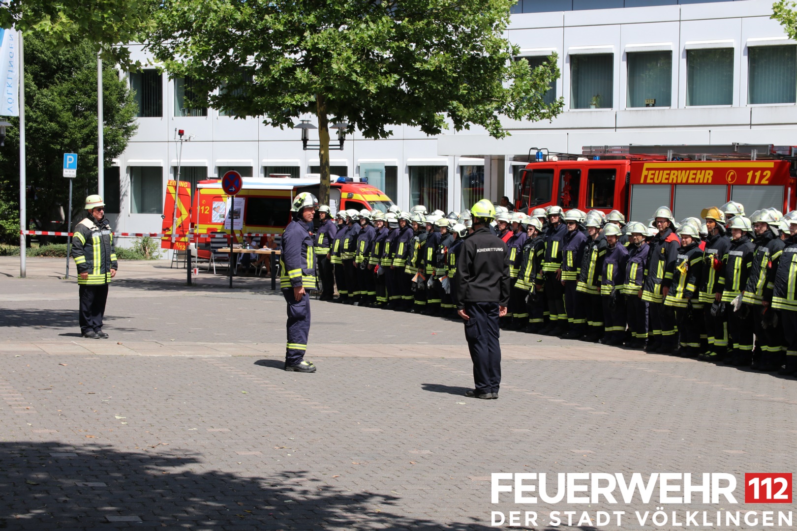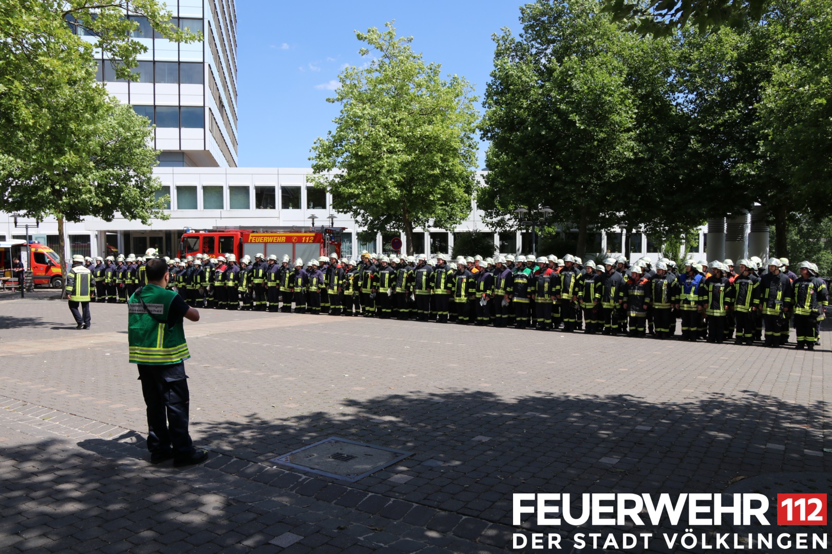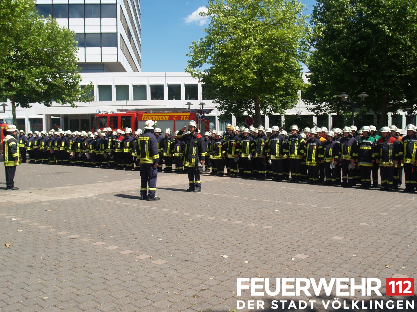 Wie in jedem Jahr führte die Freiwillige Feuerwehr der Mittelstadt Völklingen ihre Hauptübung durch. Die Bevölkerung war auch dieses Mal sehr zahlreich erschienen, um sich rund ums Rathaus selbst ein Bild von "ihrer Feuerwehr" zu machen. Die Übung bestand dieses Mal aus vier nacheinander folgenden Teilen, damit die Zuschauer alle Übungen sehen konnten.