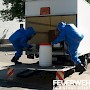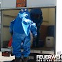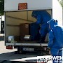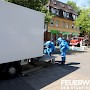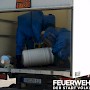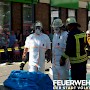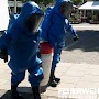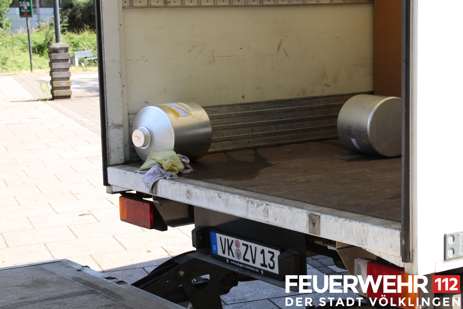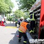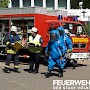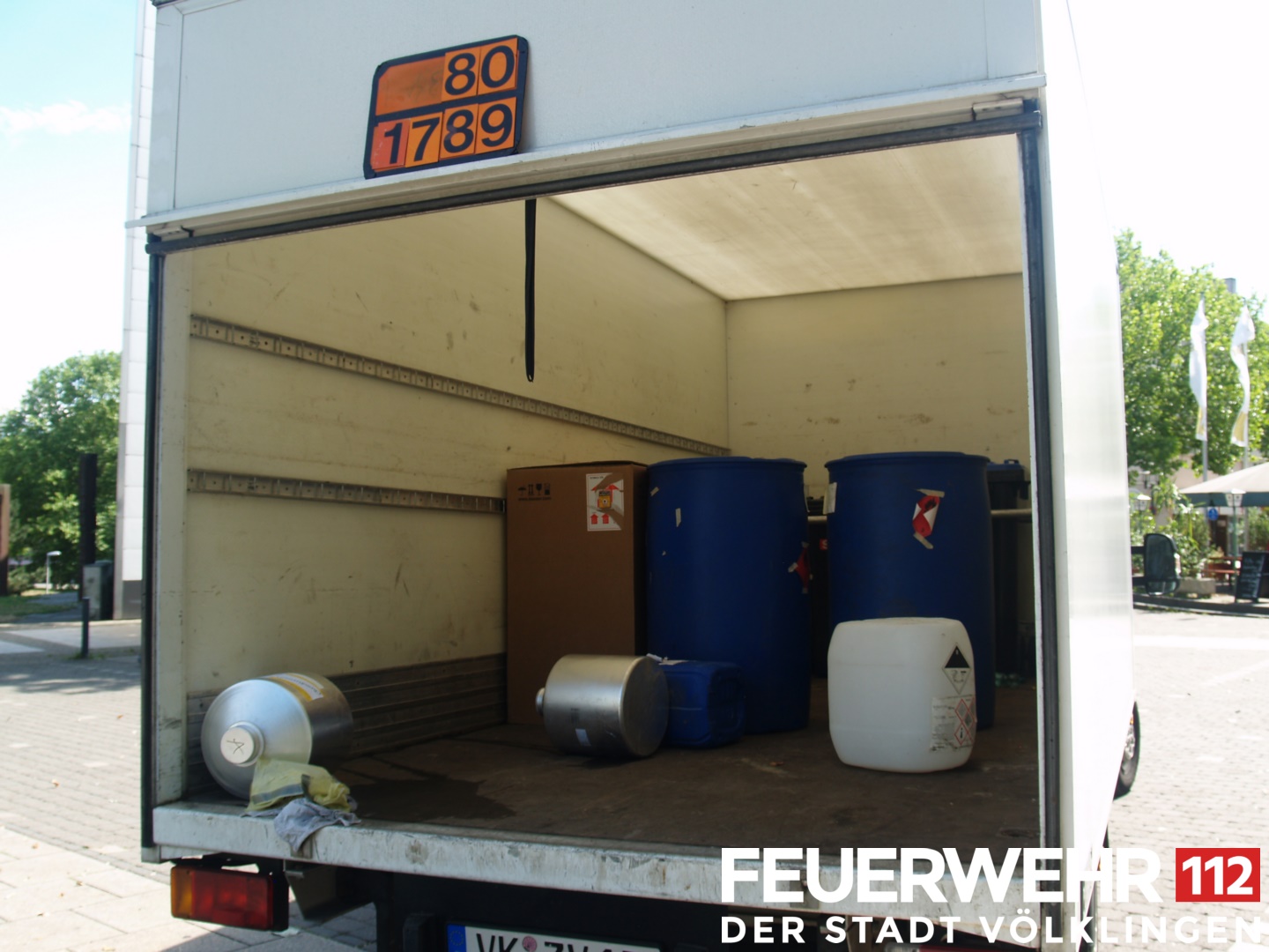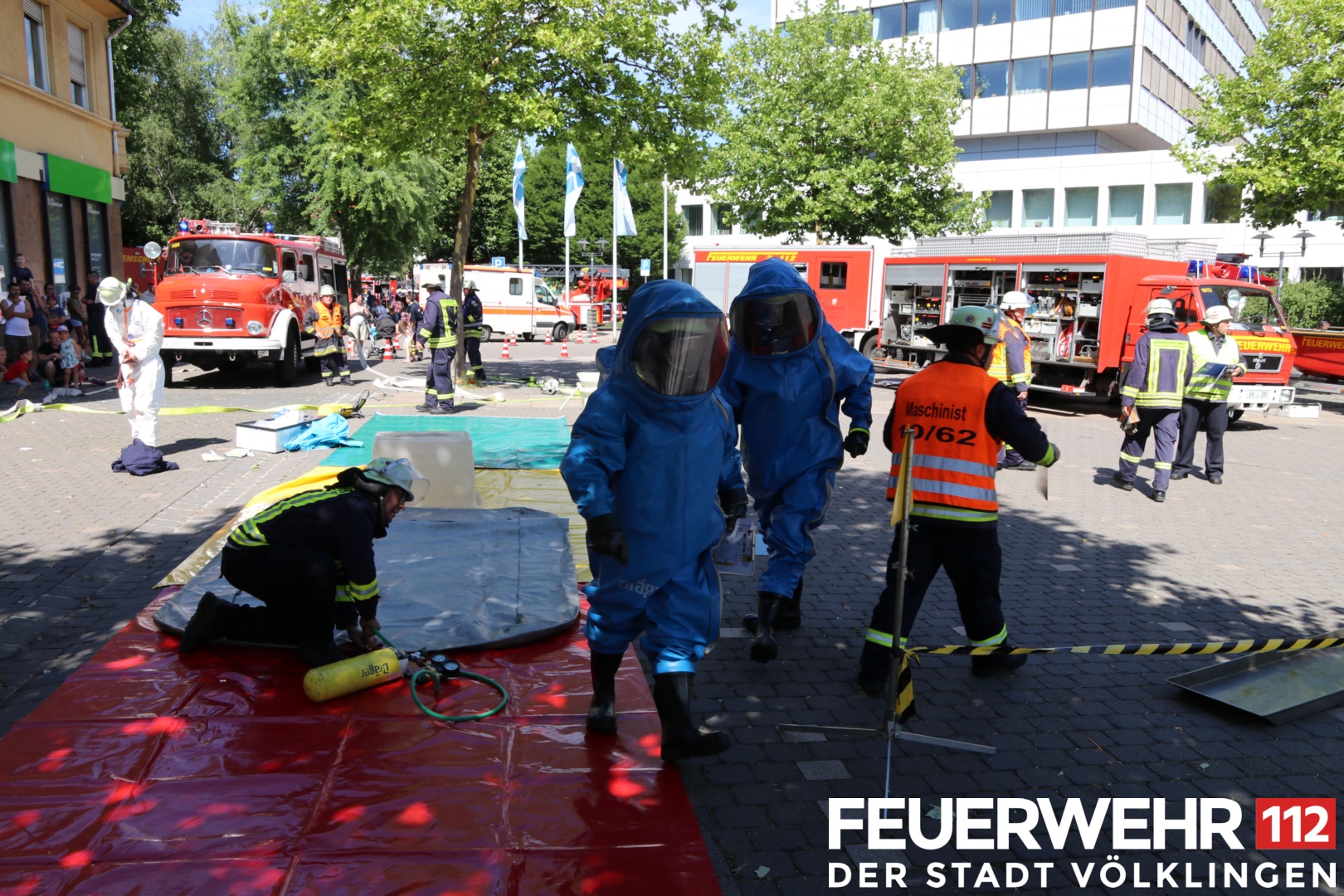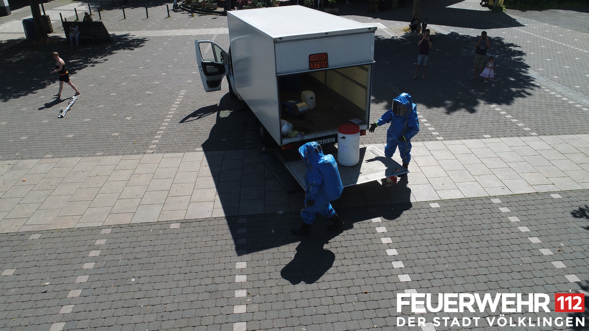 In der dritten Übung stellte die Gefahrstoffeinheit der Freiwilligen Feuerwehr Völklingen ihr Können unter Beweis. Sie stellte einen Gefahrgutunfall nach einem Bremsmanöver dar. Der verletzte Fahrer wurde gerettet und das Fass mit der auslaufenden Flüssigkeit von einem Trupp unter Chemikalienschutzanzug gesichert und zum Abtransport bereitgestellt.