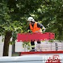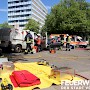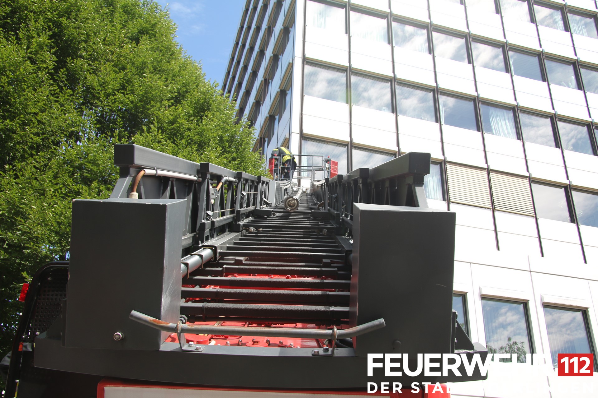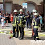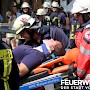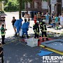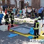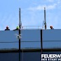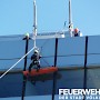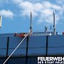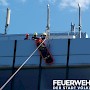 Die letzte Übung gehörte wieder den Höhenrettern des Kraftwerks Fenne. Sie zeigten des Besuchern, wie eine Person in einer Schleifkorbtrage mittels Schrägaufzug vom Dach des Rathauses gerettet wurde.