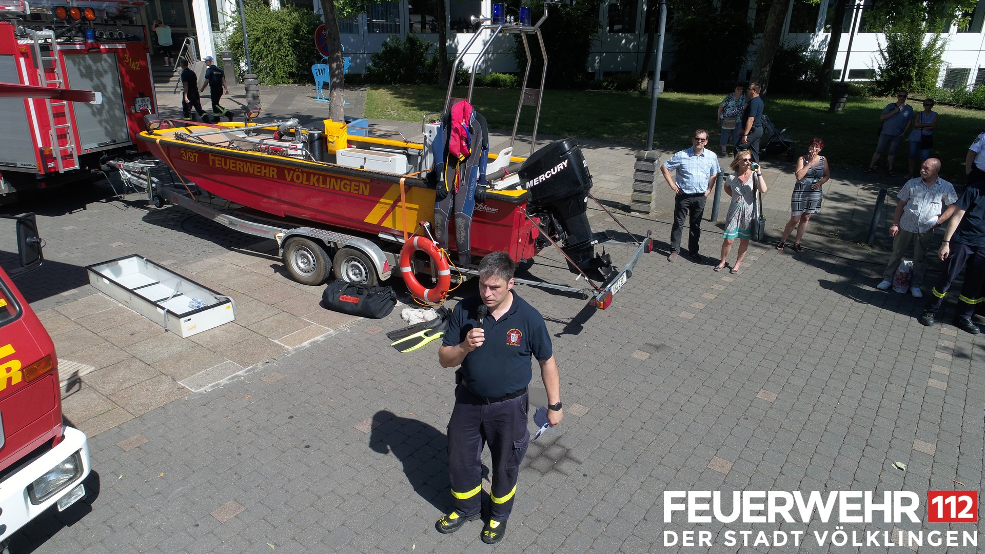 Zwischen den einzelnen Übungen konnten die Besucher einen Blick in den Einsatzleitwagen, der zur Unterstützung der Einsatzleitung dient, werfen und sich das Mehrzweckboot der Feuerwehr erklären lassen.