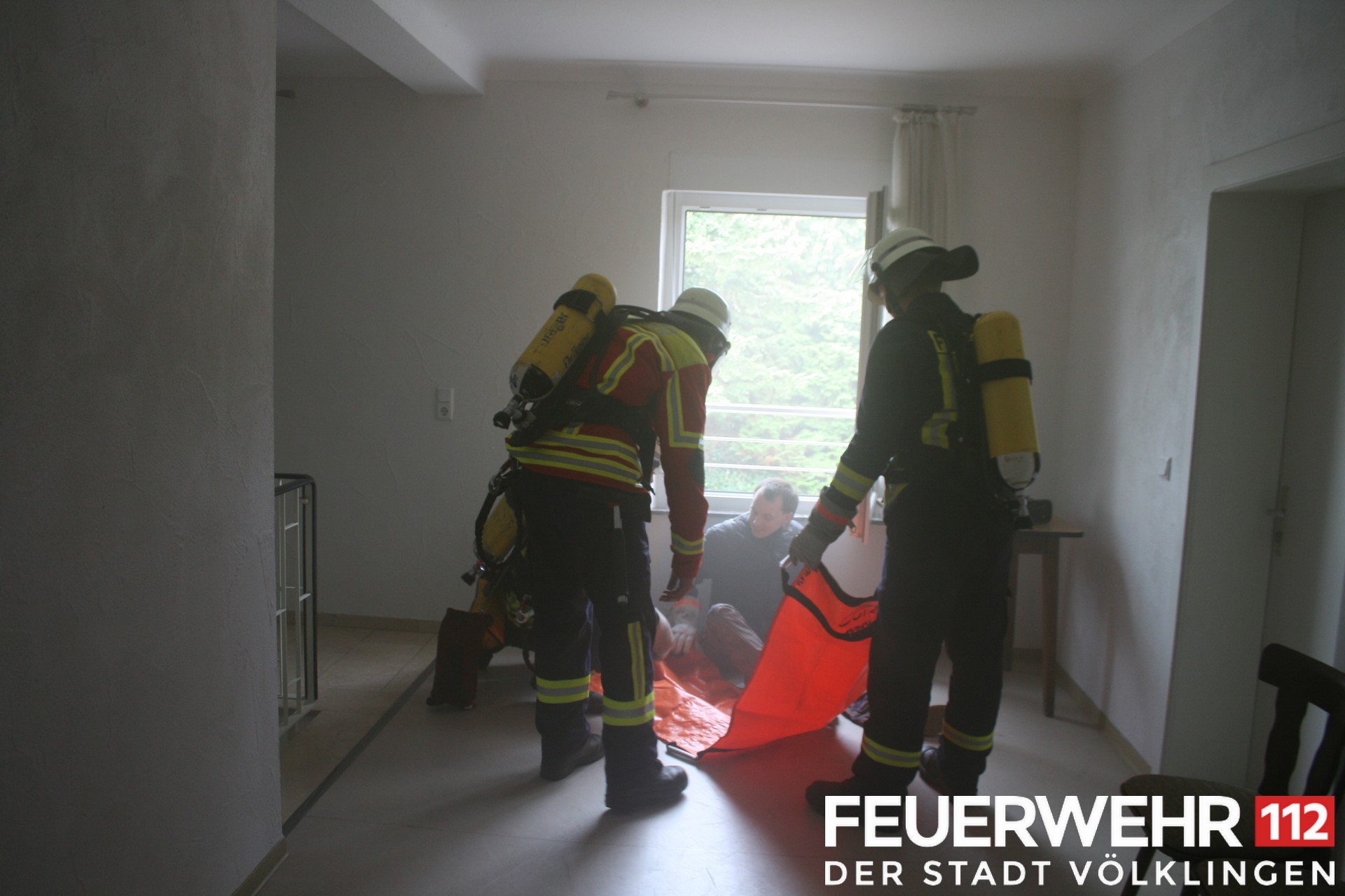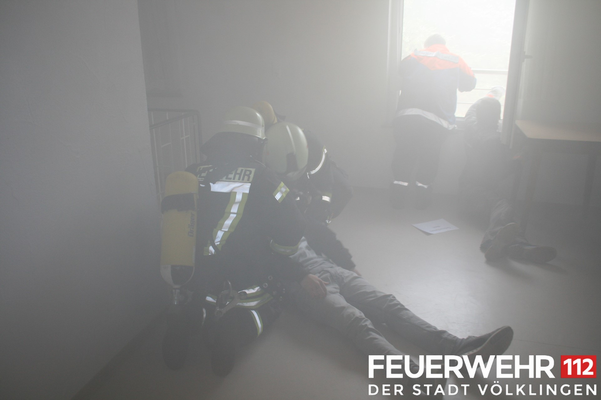 Nach Ende dieser sehr lehrreichen Stunden fuhren beide Löschbezirke nach Werbeln, um dort im und ums Pfarrheim einen angenommenen Brand mit vermissten Personen zu bekämpfen und diese aus dem Gebäude zu verbringen.