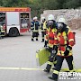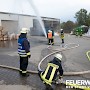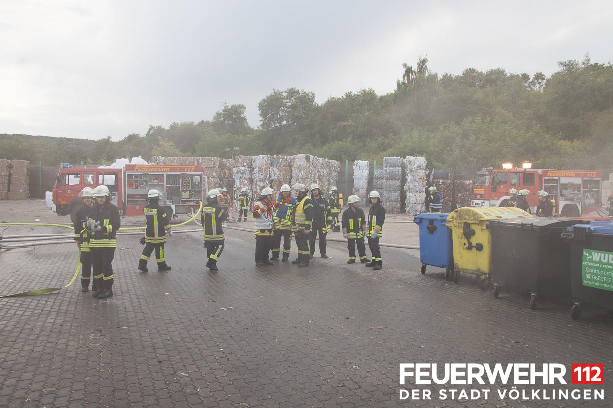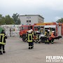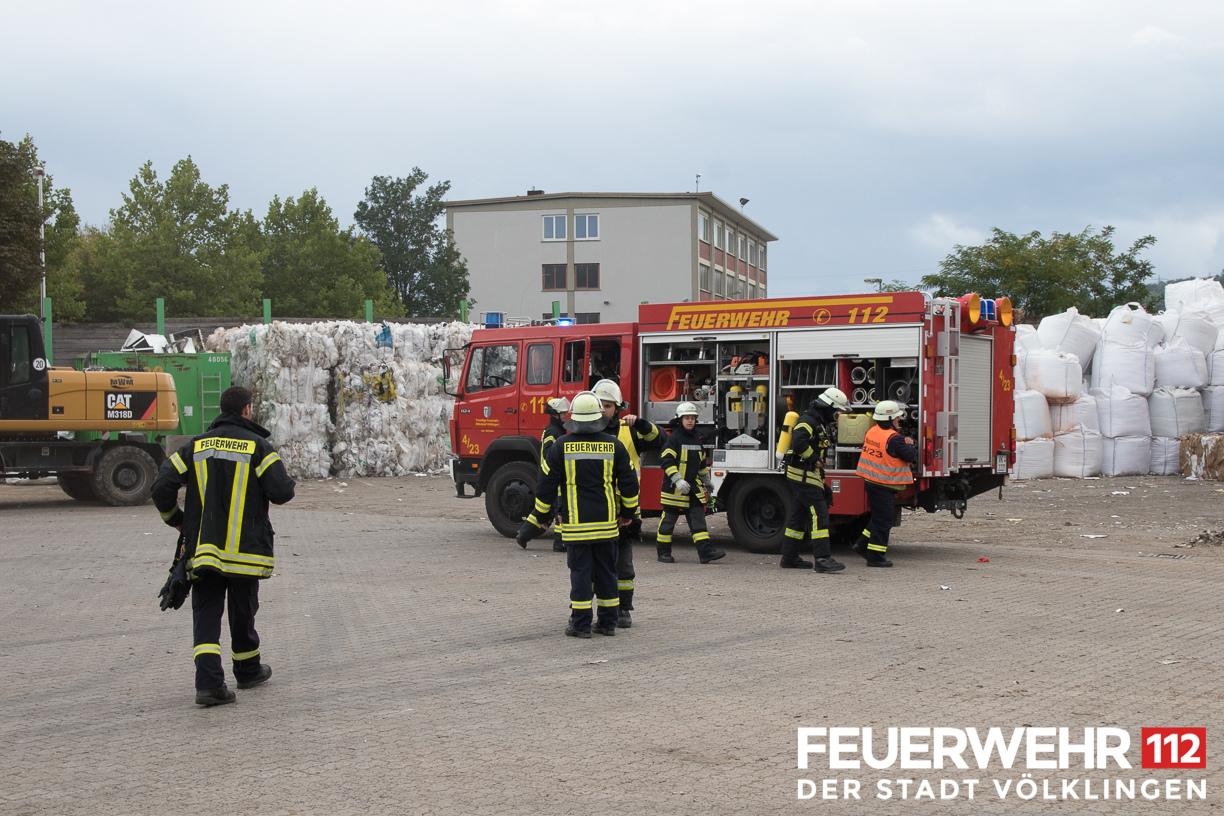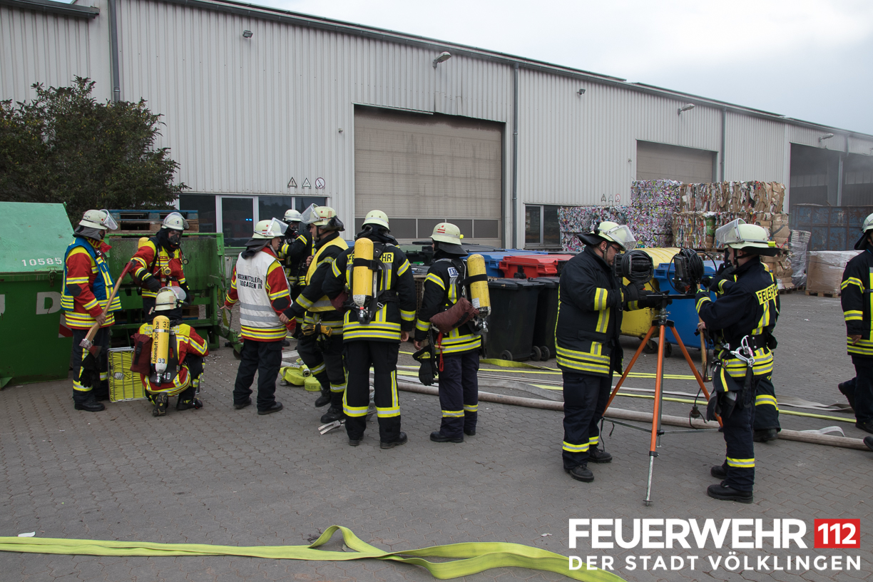 Im Inneren des Gebäudes brannte eine Ballenmaschine sowie zwei Gabelstapler. Nachdem das Gebäude erfolgreich nach vermissten Personen abgesucht wurde, gingen beide Trupps zur Brandbekämpfung über. Dabei stürzte ein Feuerwehrmann in eine Grube, woraufhin eine „Mayday-Meldung“ abgesetzt wurde. Sofort eilten zwei weitere Trupps unter Atemschutz in die Lagerhalle, um den verletzten Kameraden aus der Gefahrenzone zu retten.
