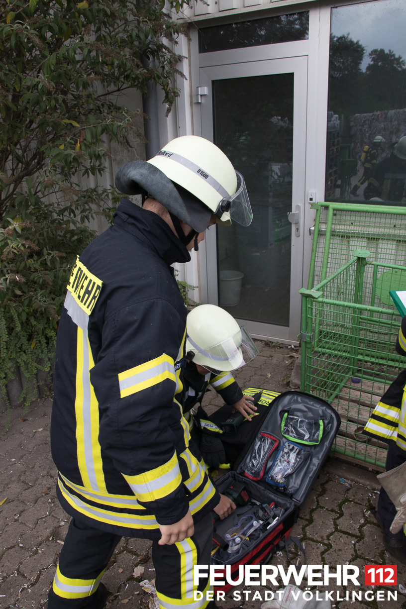 Angenommene Lage: Unklare Rauchentwicklung aus einem Gebäude der MWM GmbH. Die ersteintreffenden Kräfte des Löschbezirk Wehrden, verschaffen sich gewaltsam über eine Tür Zugang zu dem betroffenen Objekt.