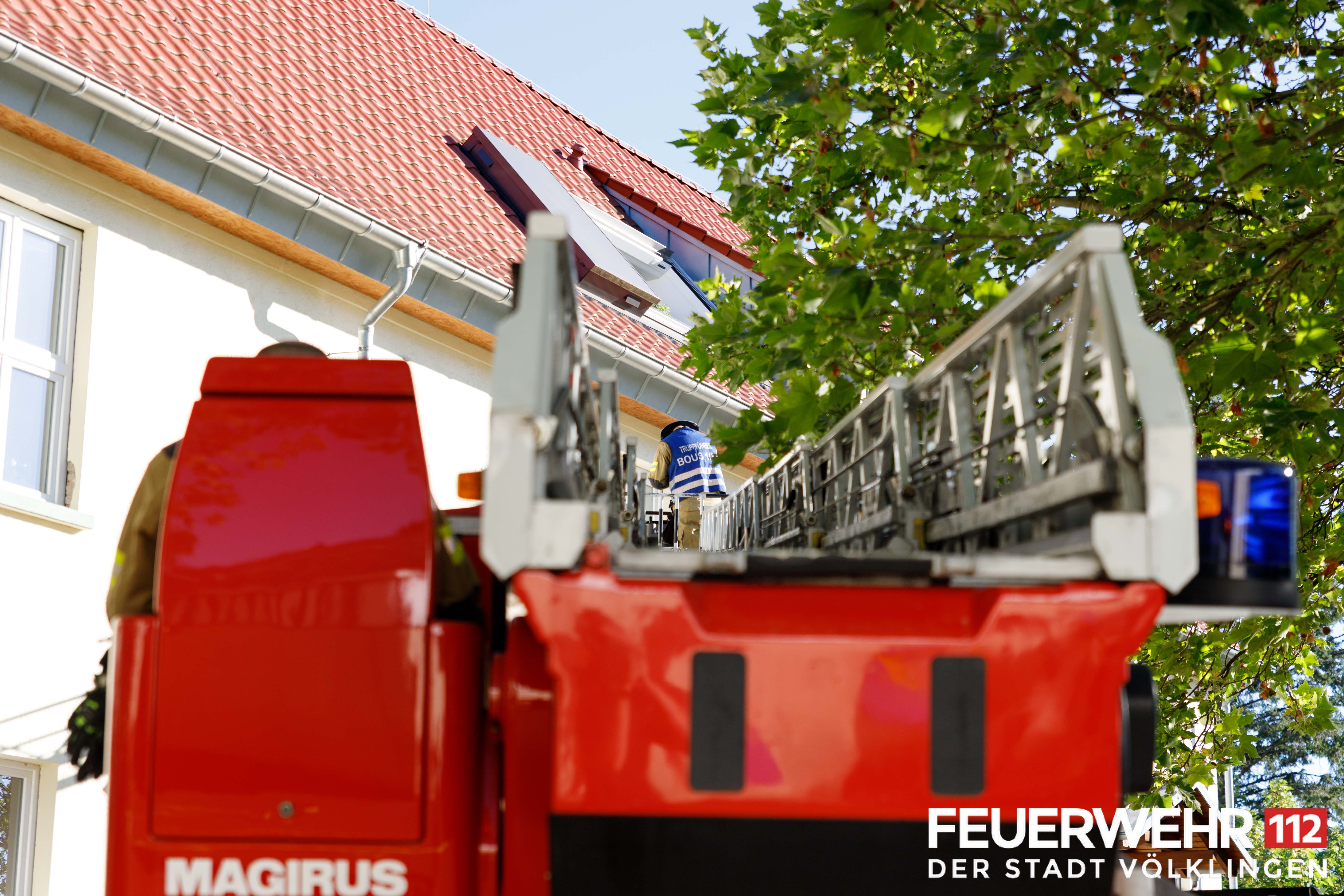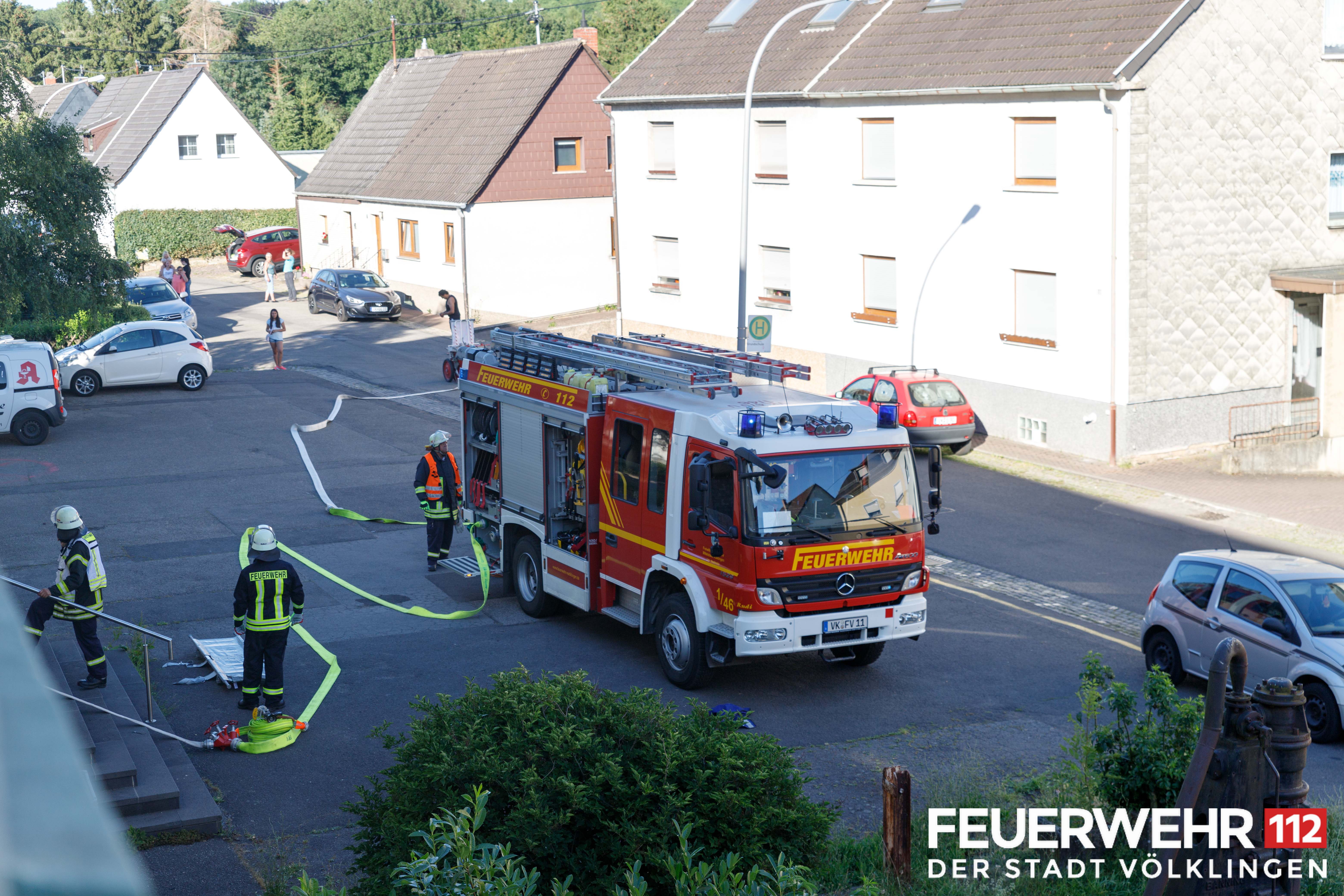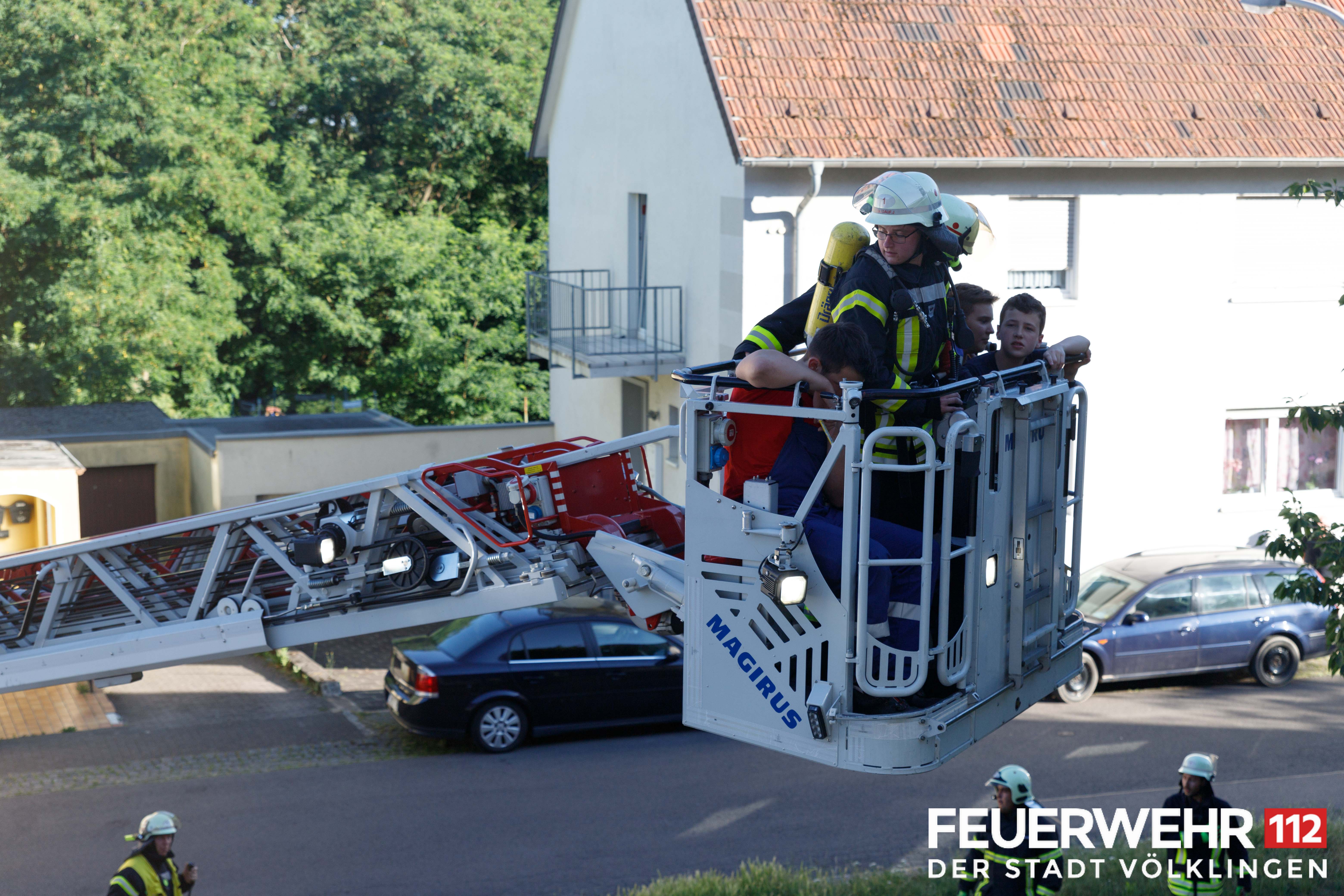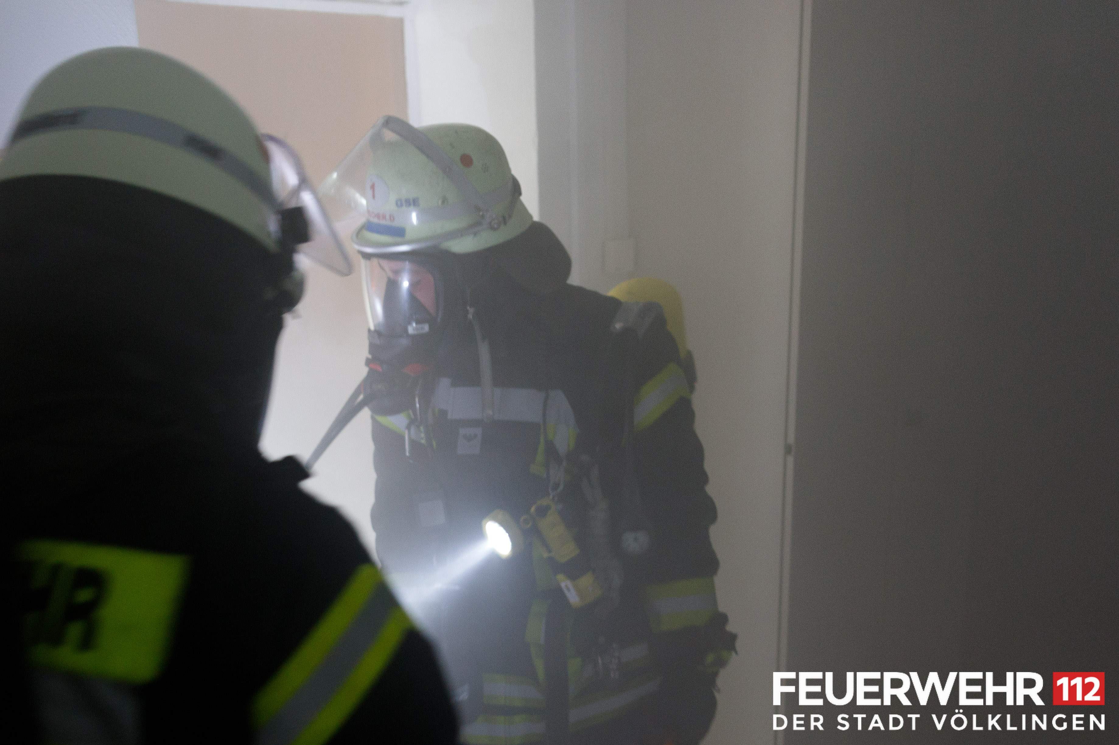 Das ersteintreffende Fahrzeug aus Völklingen erkundete die Lage und alarmierte umgehend die Feuerwehr Bous zur Unterstützung nach. Zwischenzeitlich brachte sich die Drehleiter aus Völklingen in Stellung und rettete mehrere Kinder aus dem 1. Obergeschoss. Weitere Kräfte aus Völklingen und Bous übernahmen den Angriffsweg über den Schulhof, wo ebenfalls die Drehleiter aus Bous eingesetzt wurde. Mit mehreren Trupps beider Feuerwehren gingen die Einsatzkräfte unter schwerem Atemschutz zur Menschenrettung und Brandbekämpfung durch das stark verrauchte Gebäude vor. Der Einsatz wurde in zwei Einsatzabschnitte unterteilt und der Funkverkehr über den Einsatzleitwagen aus Völklingen koordiniert.