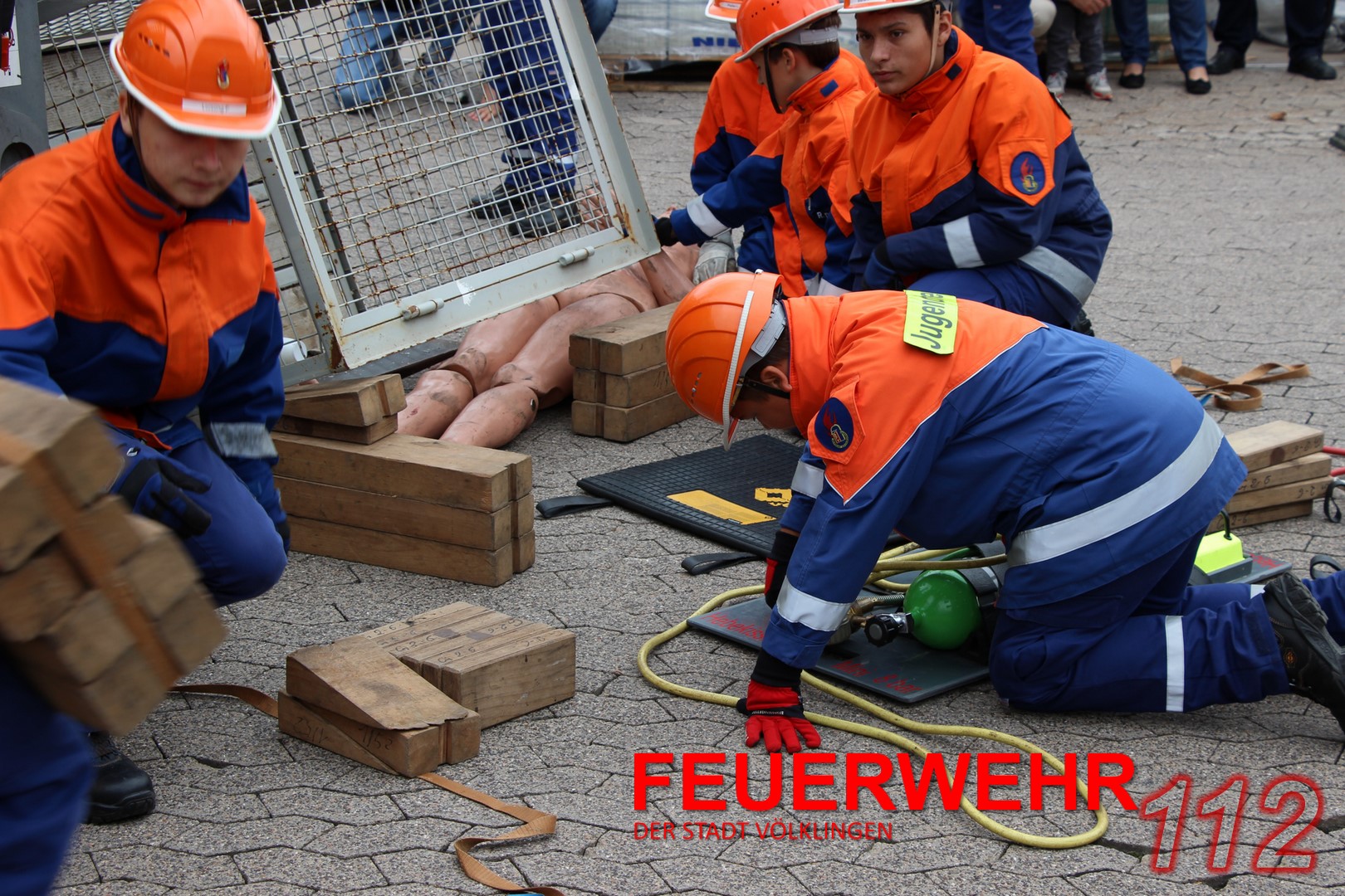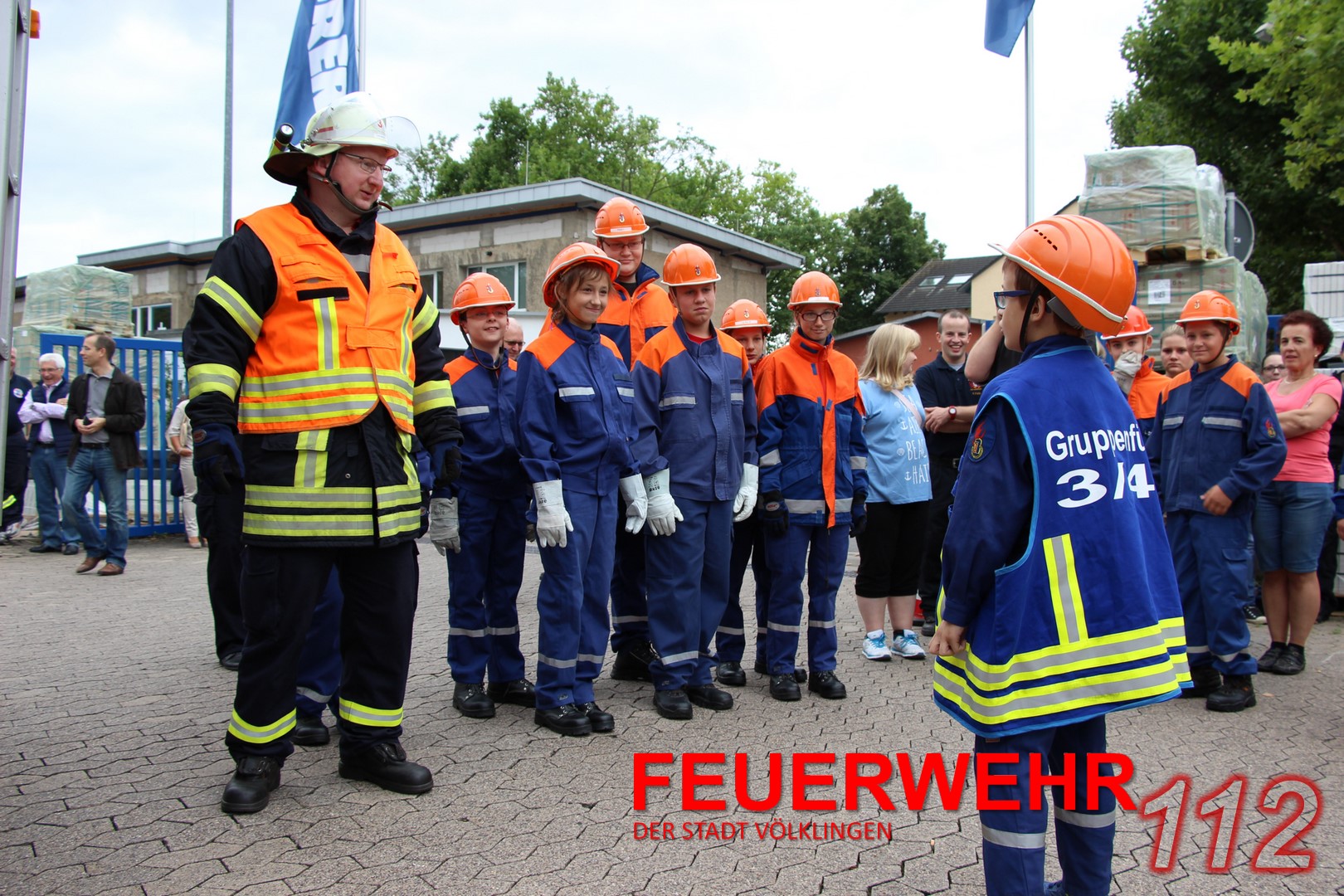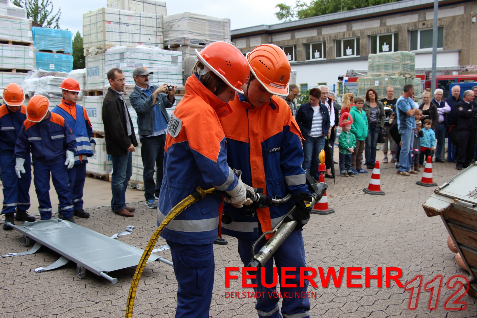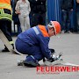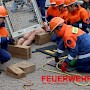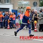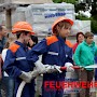 24 Jugendliche (davon vier Jugendfeuerwehrfrauen) mit ihren Ausbildern führten unter den Augen von Oberbürgermeister Lorig, Brandinspekteur Bender, Wehrführer Broy, Regionalverbands-Jugendwart Schaum und Stadtjugendwart Menzel diese Übung durch.
