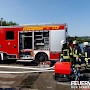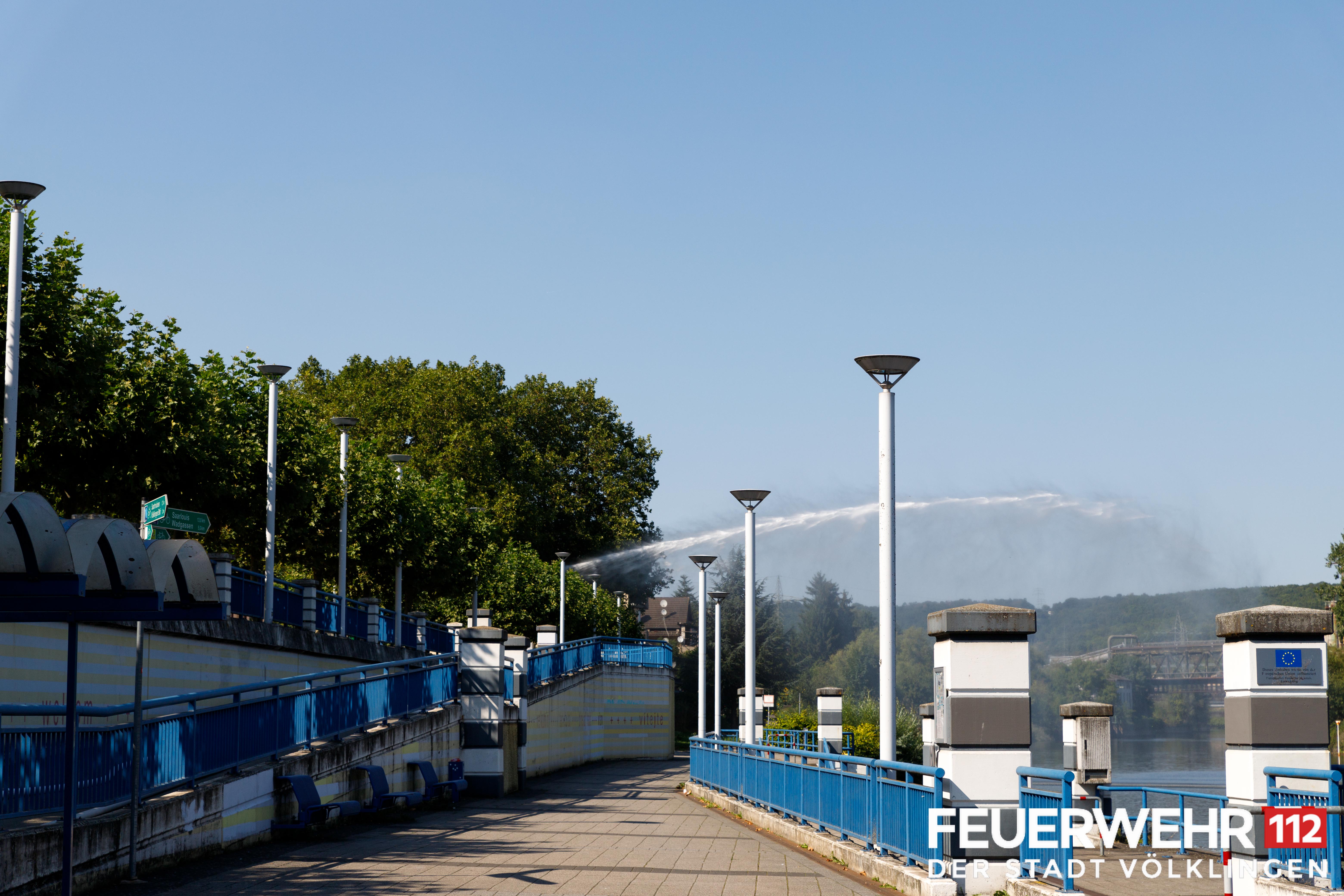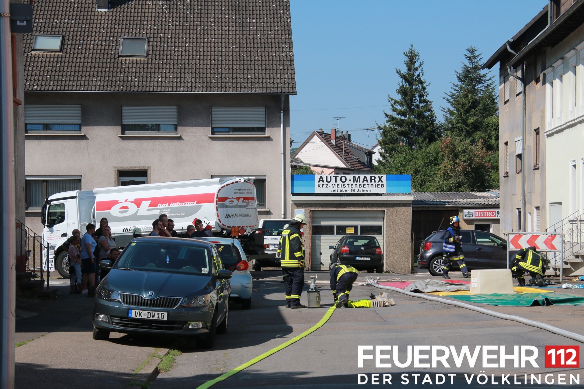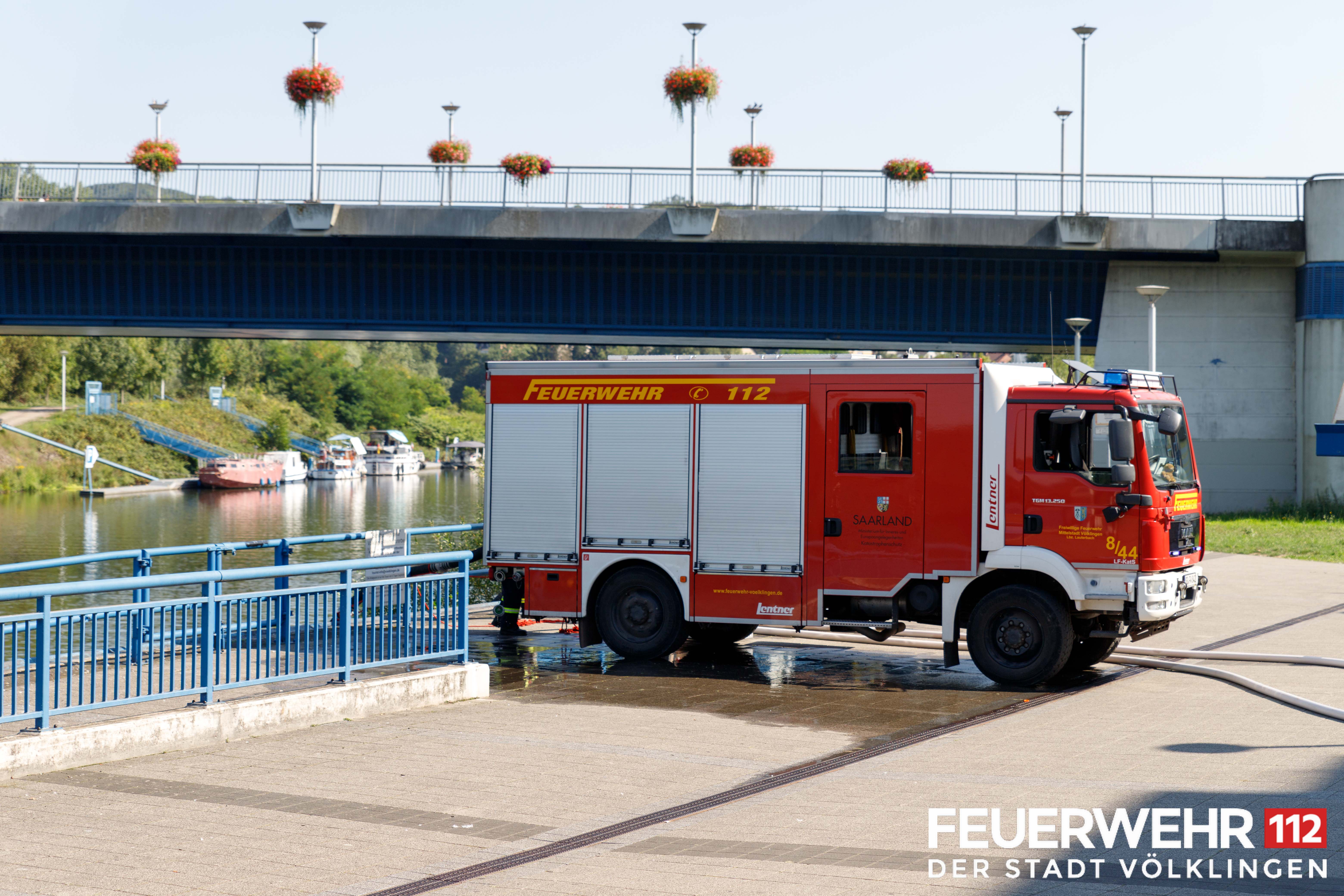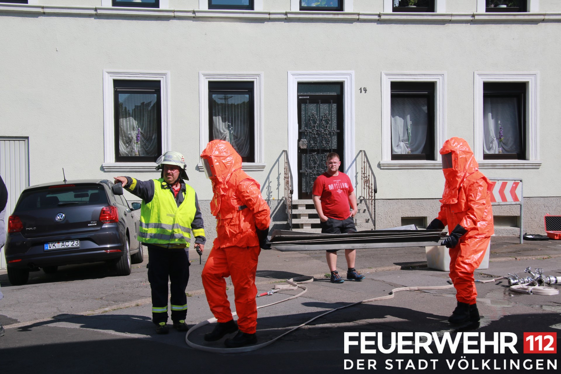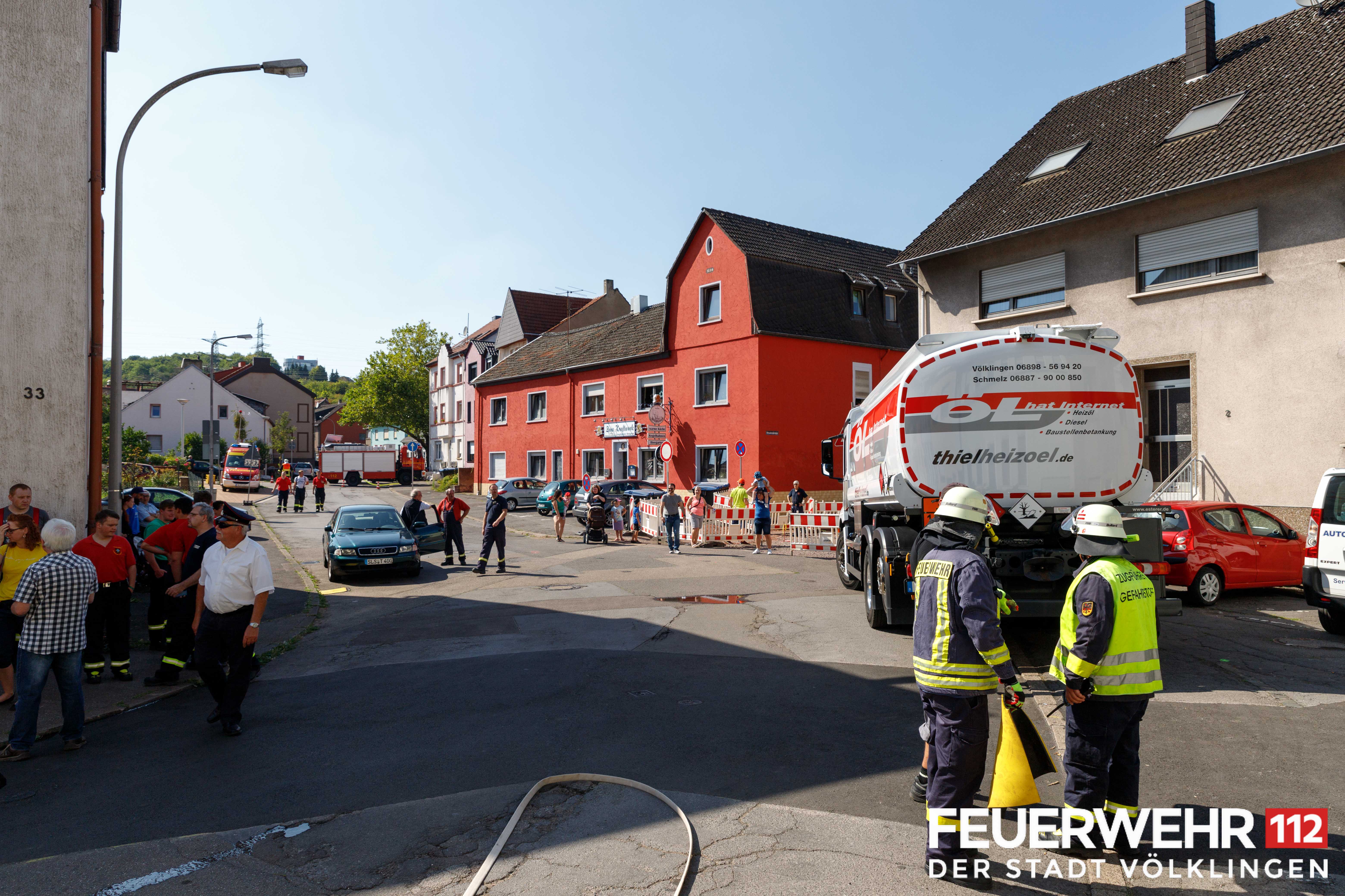 Als drittes und letztes Szenario kommt es in der Saarstraße zum Umkippen eines Tanklasters. Dieser fährt von der Saarstraße in Richtung Hostenbacher Straße. In der dortigen Kurve kommt das Fahrzeug zum Kippen. Dabei tritt Dieselkraftstoff aus. Dieser gelangt über die Schachteinläufe in das Abwassersystem und damit auch in die benachbarten Häuser. Die austretende Ladung wird umgepumpt und der Brandschutz in der Umgebung sichergestellt. Zur Unterstützung kommt das Zumischlöschfahrzeug der Saarstahl AG zum Einsatz, da die Wasserversorgung im Unfallbereich über das Trinkwassernetz nicht sichergestellt ist wird zusätzlich Wasser aus der Saar zur Einsatzstelle gefördert.