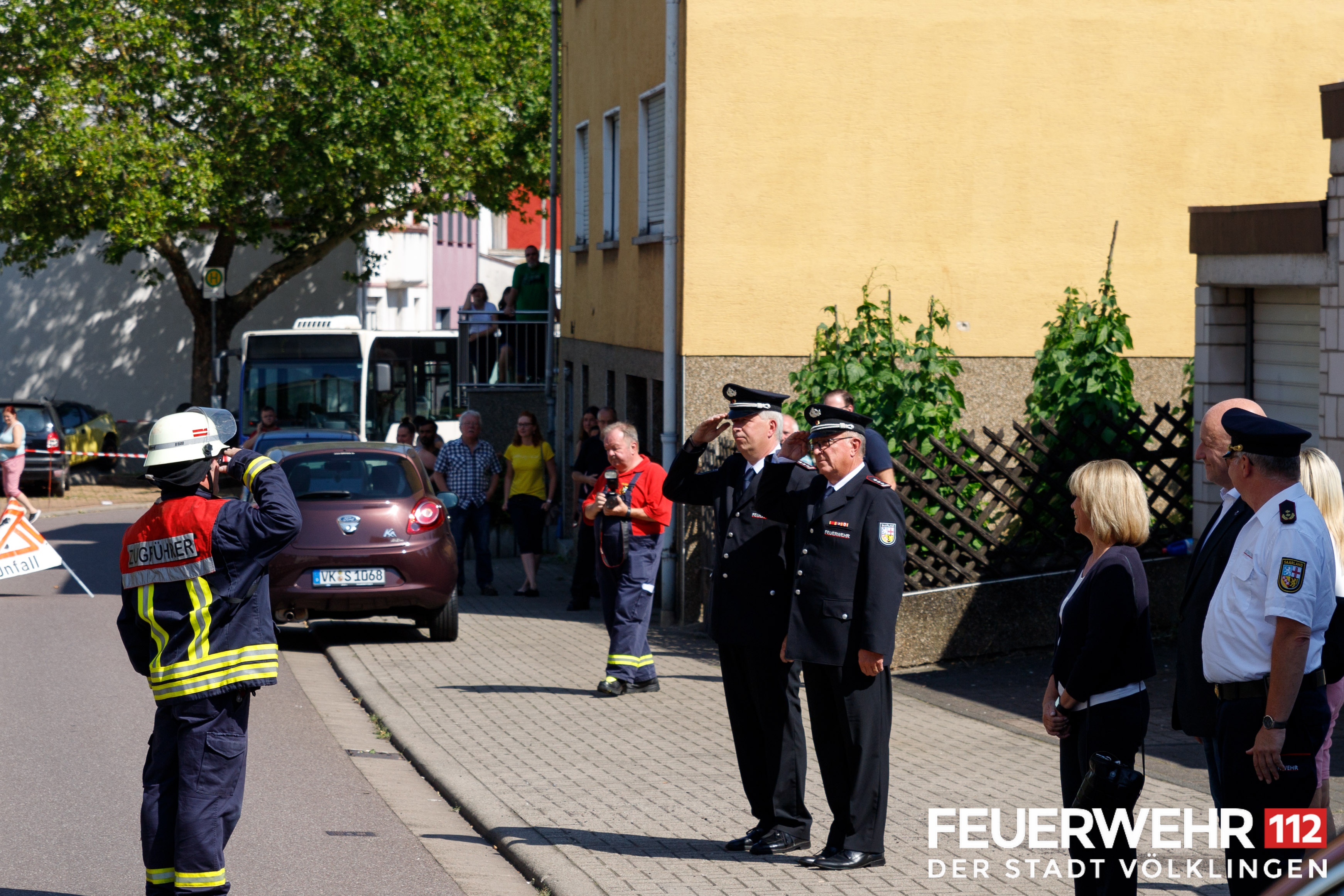 Wehrführer Herbert Broy war sichtlich mit der Übung zufrieden. Auch die zahlreichen Gäste, u. a. Regionalverbandsbrandinspekteur Tony Bender, Wehrführer der umliegenden Gemeinden, Oberbürgermeisterin Christiane Blatt, Bürgermeister Christof Sellen, Vertreter des Stadt- und Ortsrates konnten sich von der Leistungsfähigkeit der Völklinger Wehr überzeugen. Die Feuerwehr Völklingen bedankt sich bei dem DRK und der Werkfeuerwehr der Saarstahl AG für die Unterstützung bei dieser Übung.