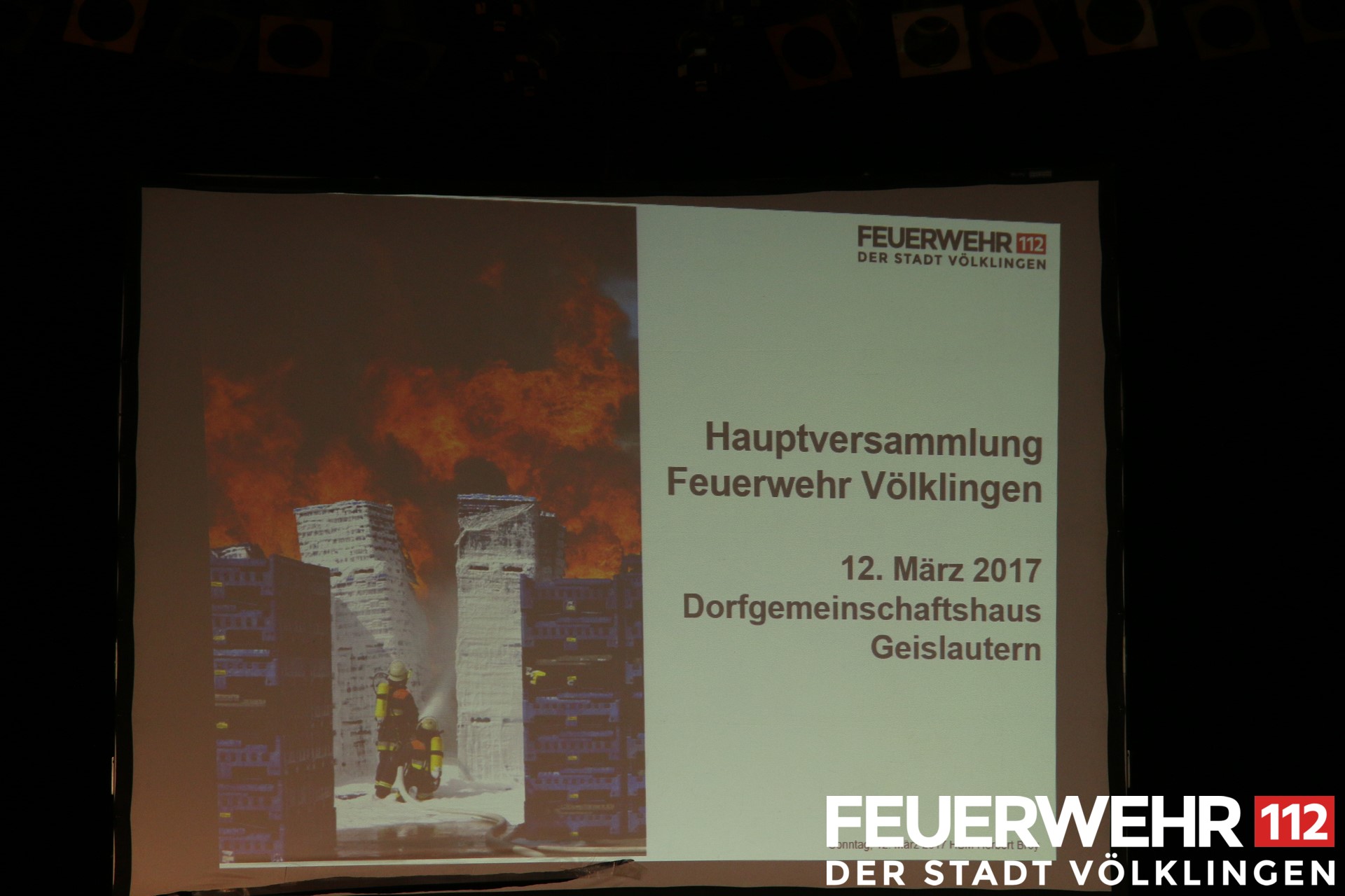 Am Sonntag, dem 12.03.2017 fand im Dorfgemeinschaftshaus Geislautern die diesjährige Hauptversammlung der Freiwilligen Feuerwehr Völklingen statt.
