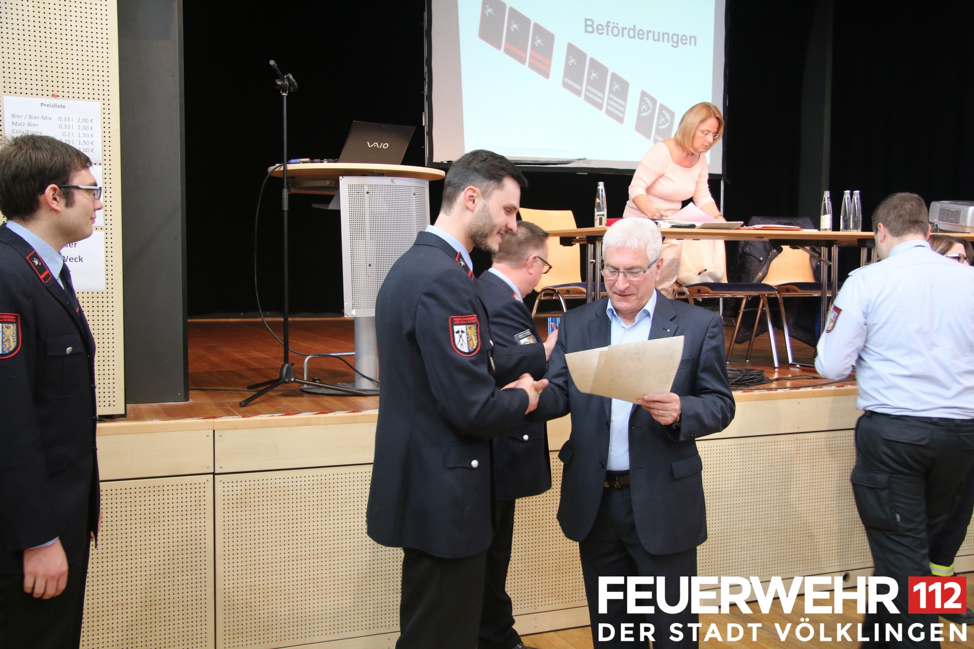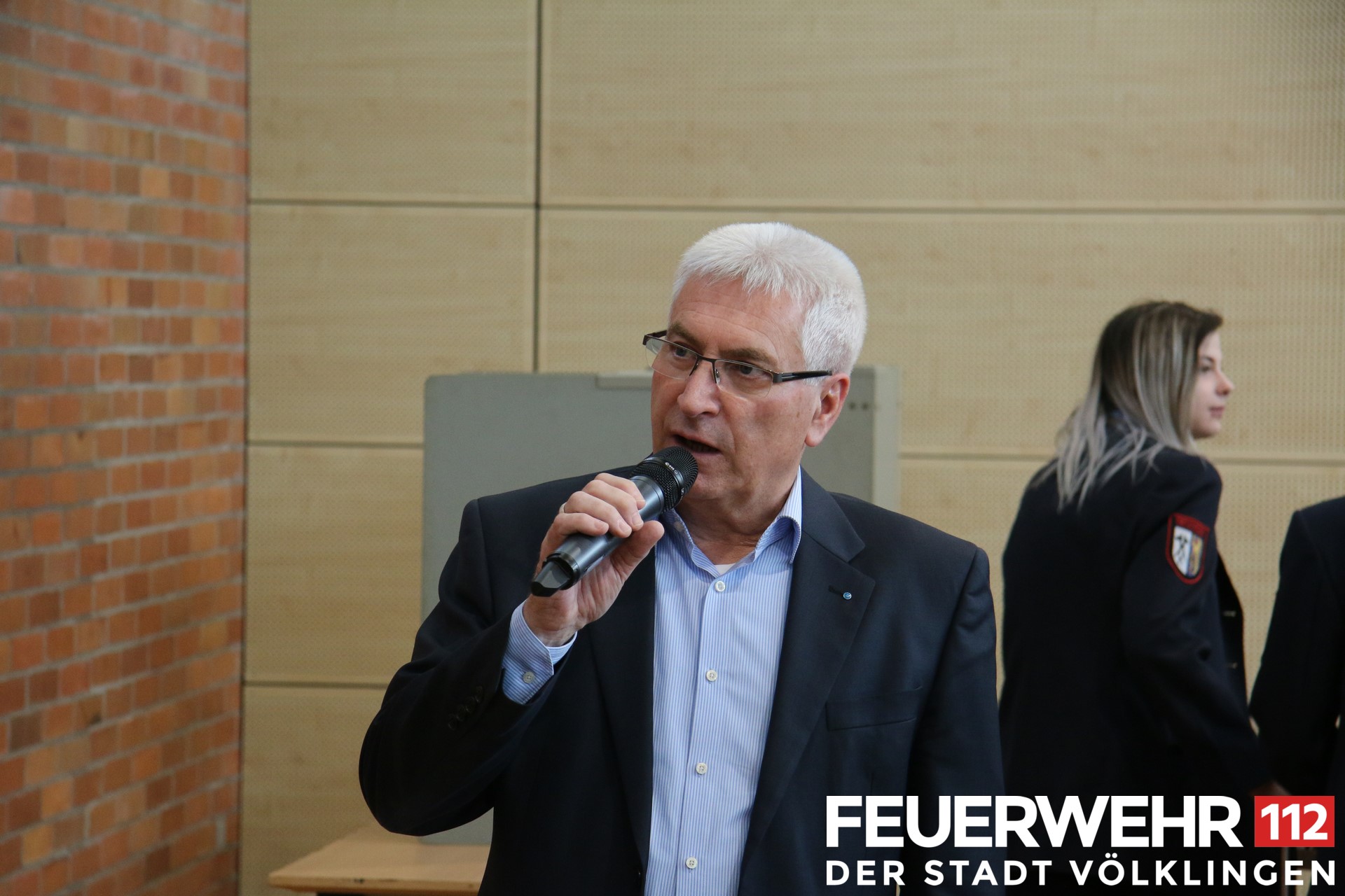 Nach weiteren Grußworten von Harald Schindel (Dezernent für Brand- und Zivilschutz im Regionalverband Saarbrücken) und Brandinspekteur Tony Bender, konnte die Versammlung mit den Beförderungen fortfahren.