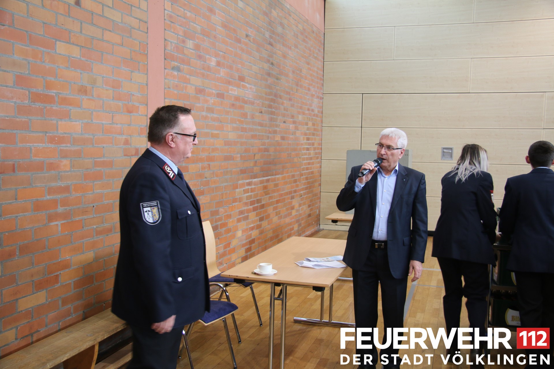 Nach der Durchführung der Wahl, konnte Oberbürgermeister Klaus Lorig, Herbert Broy zur Wiederwahl gratulieren. Dieser wird nun die Geschicke der Feuerwehr Völklingen für weitere 6 Jahre leiten.