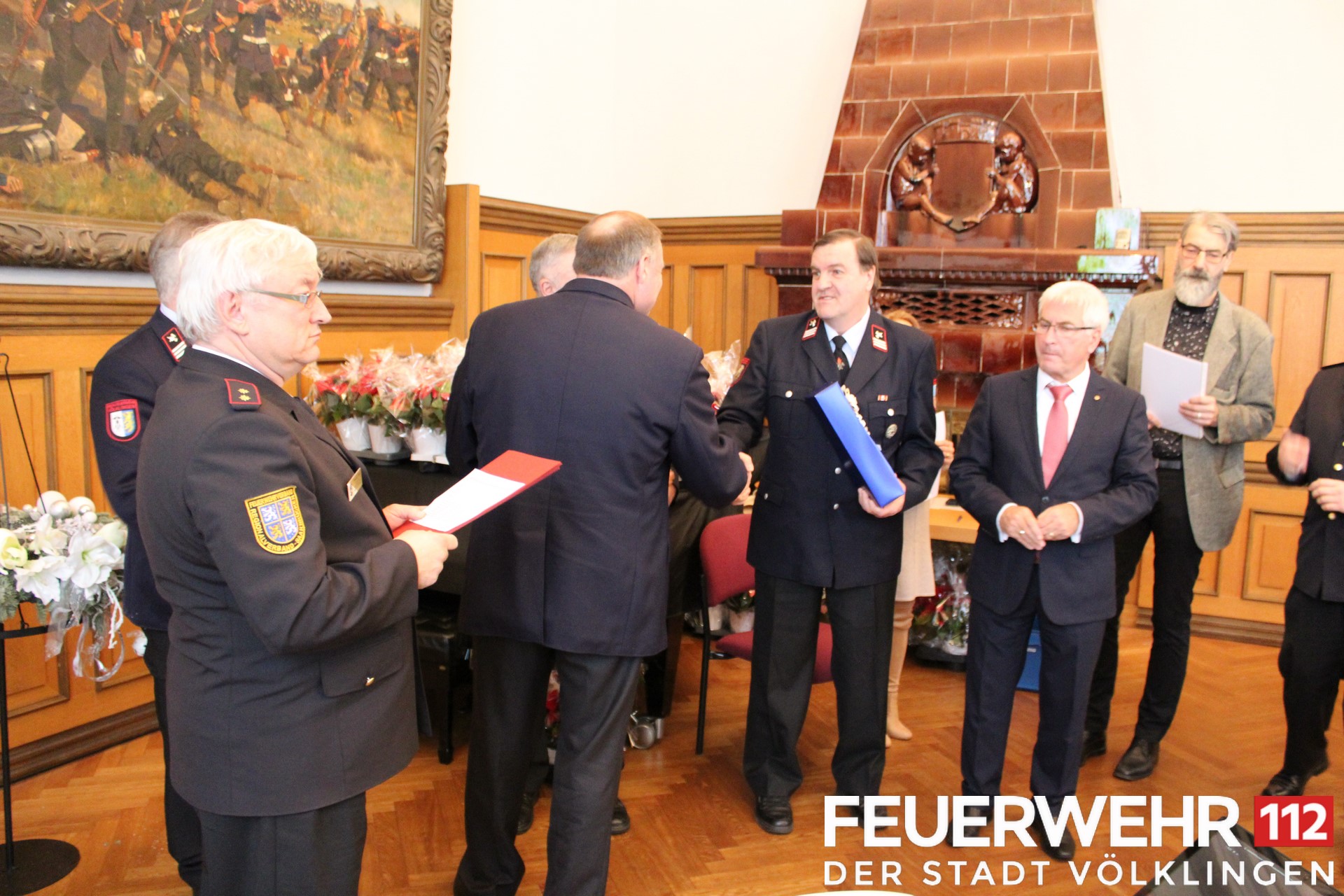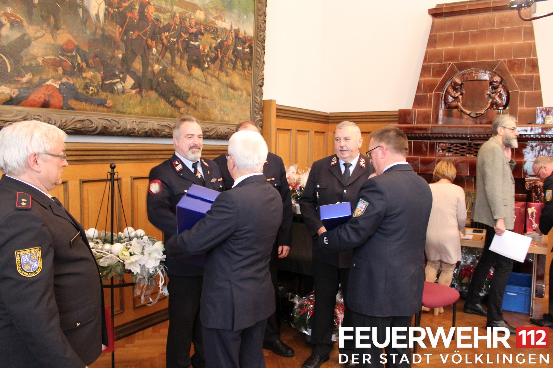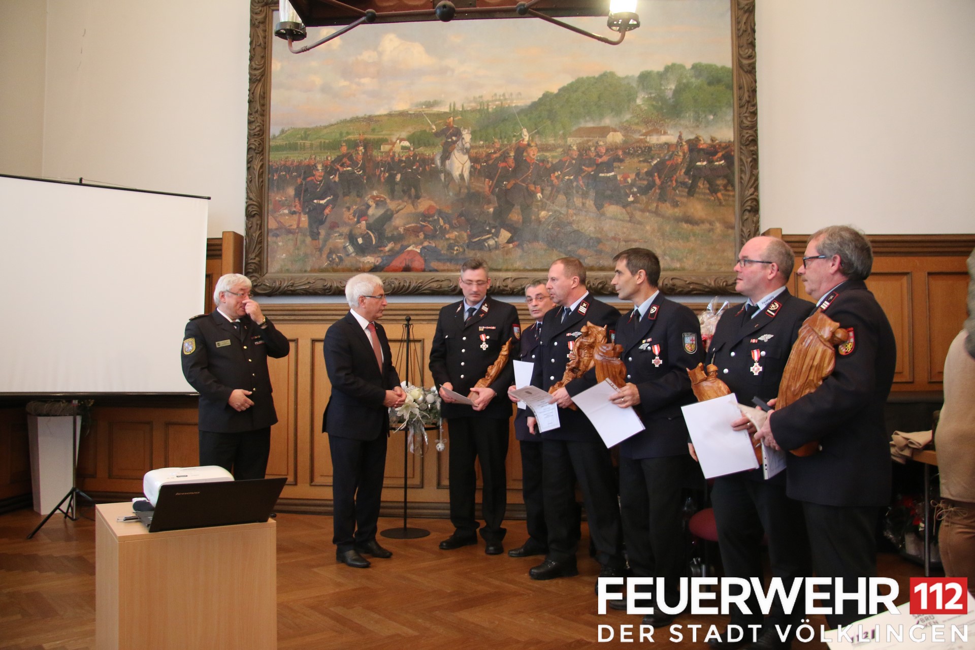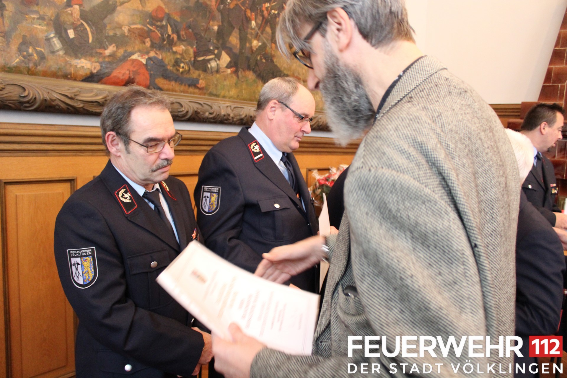 „Vor allem möchte ich Ihnen Danke sagen für die vielen Stunden freiwilliger und ehrenamtlicher Arbeit, die Sie unserer Stadt und unserem Gemeinwesen schenken und geschenkt haben.“ Dies erklärte Oberbürgermeister Klaus Lorig zu Beginn seiner Rede anlässlich der Ehrung langjähriger Mitglieder der Freiwilligen Feuerwehr der Mittelstadt Völklingen. Die Ehrung fand im historischen Sitzungssaal des Alten Rathauses statt.