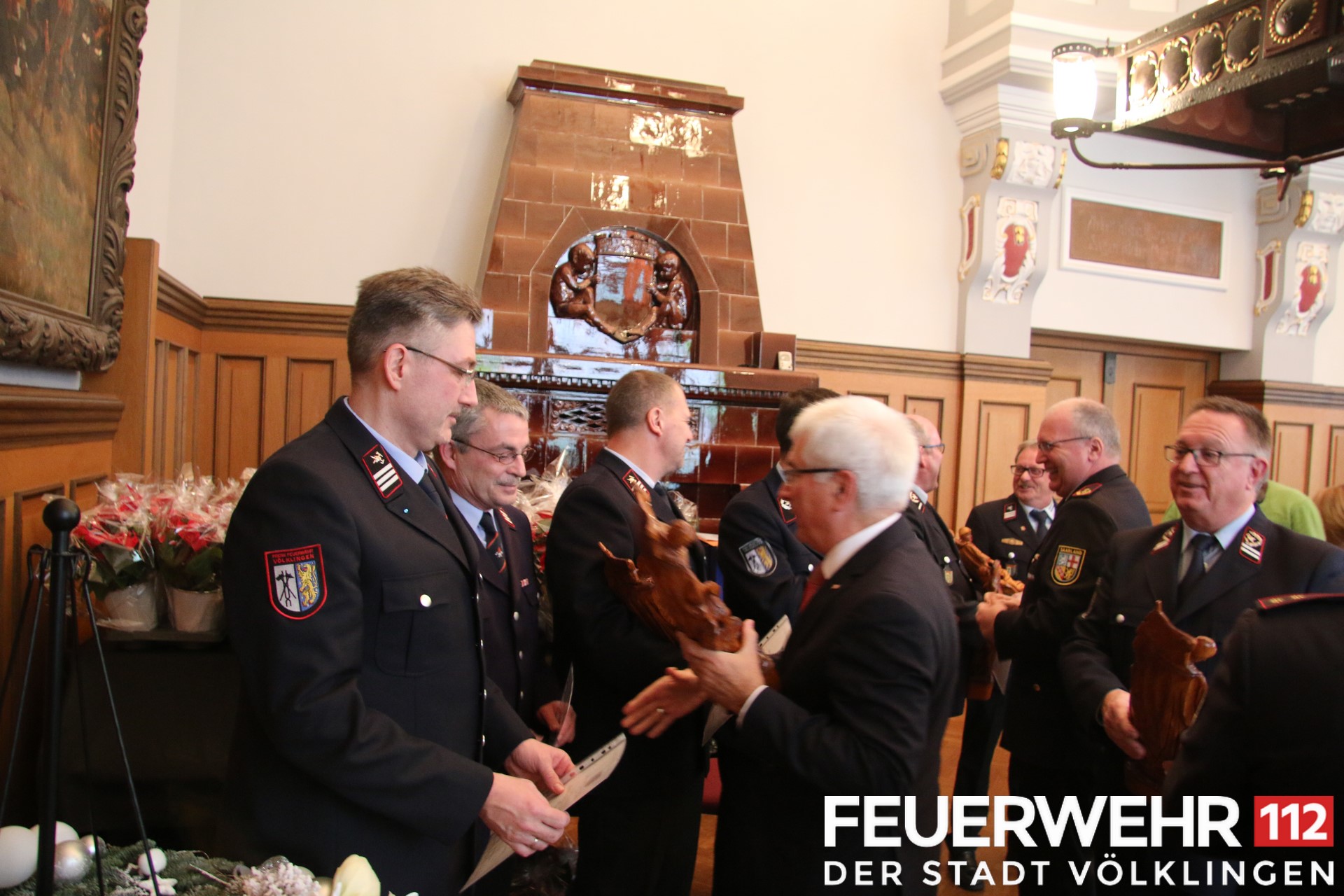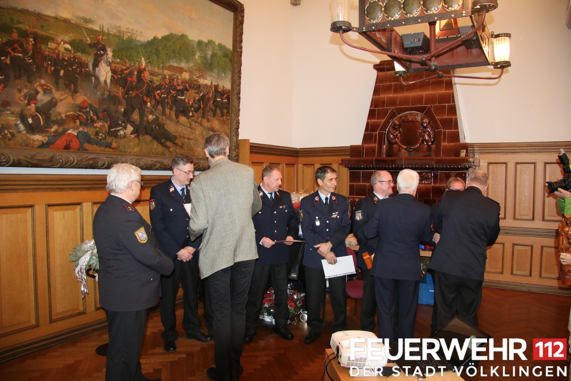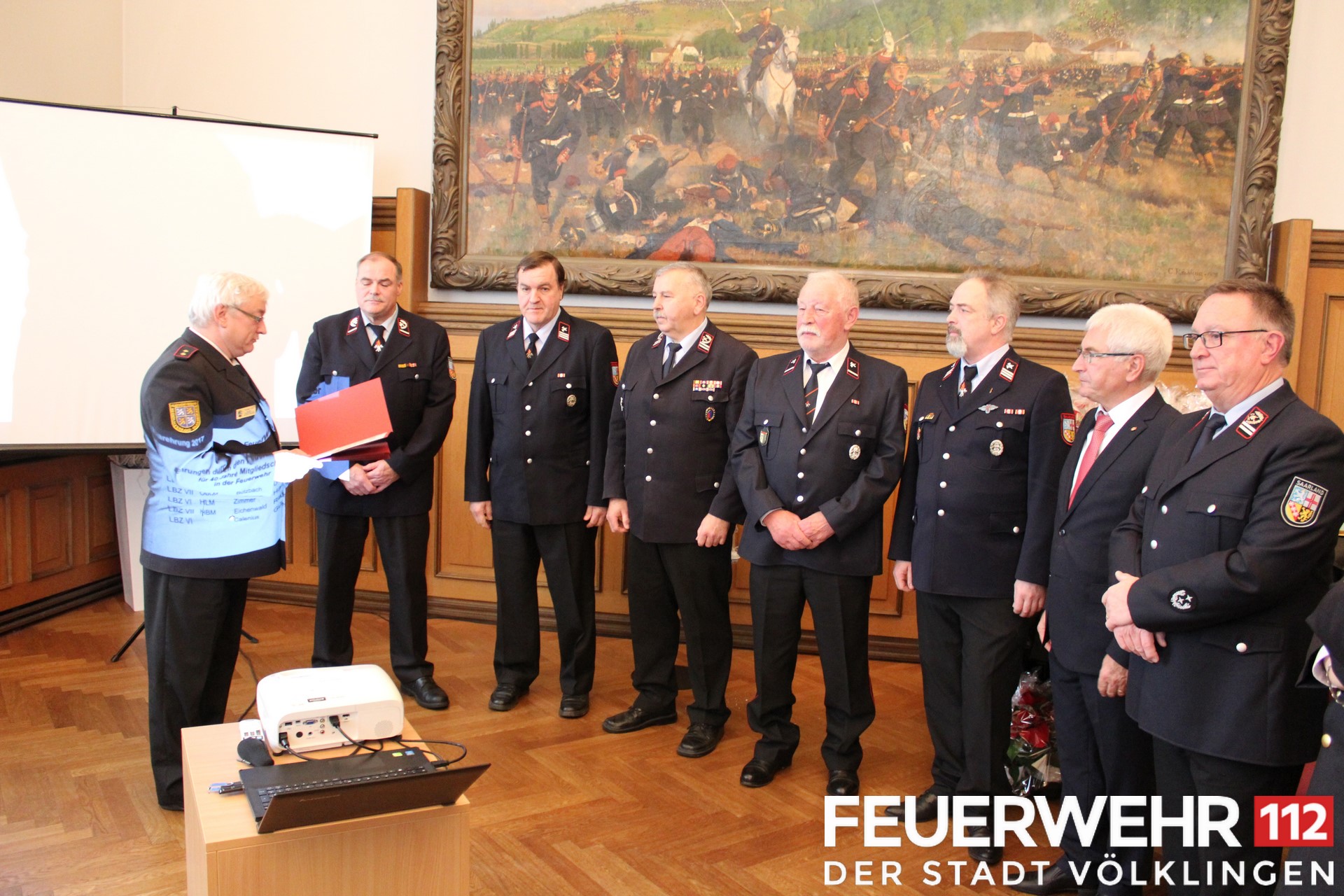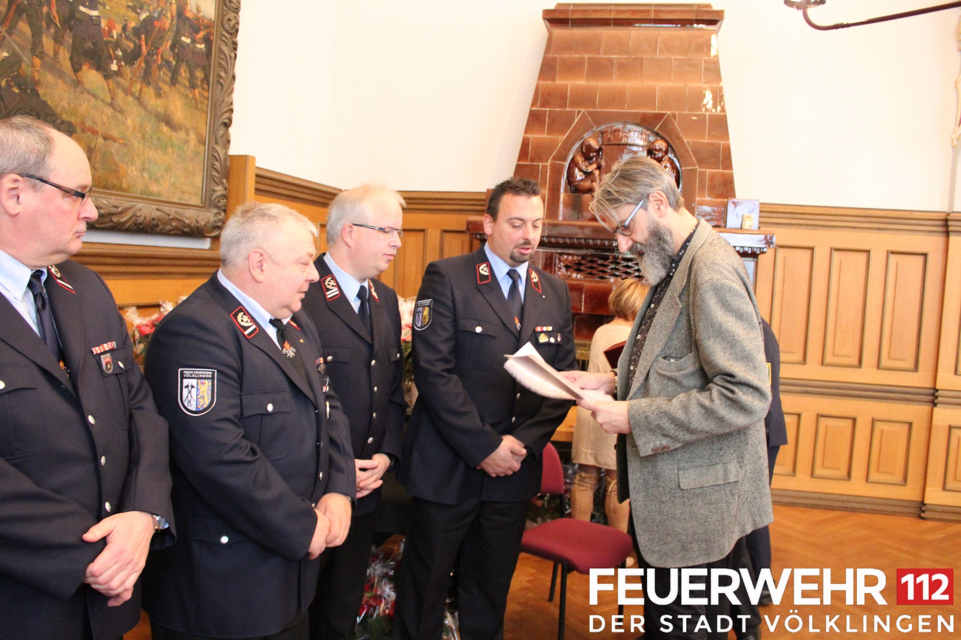 „Vor allem möchte ich Ihnen Danke sagen für die vielen Stunden freiwilliger und ehrenamtlicher Arbeit, die Sie unserer Stadt und unserem Gemeinwesen schenken und geschenkt haben.“ Dies erklärte Oberbürgermeister Klaus Lorig zu Beginn seiner Rede anlässlich der Ehrung langjähriger Mitglieder der Freiwilligen Feuerwehr der Mittelstadt Völklingen. Die Ehrung fand im historischen Sitzungssaal des Alten Rathauses statt.