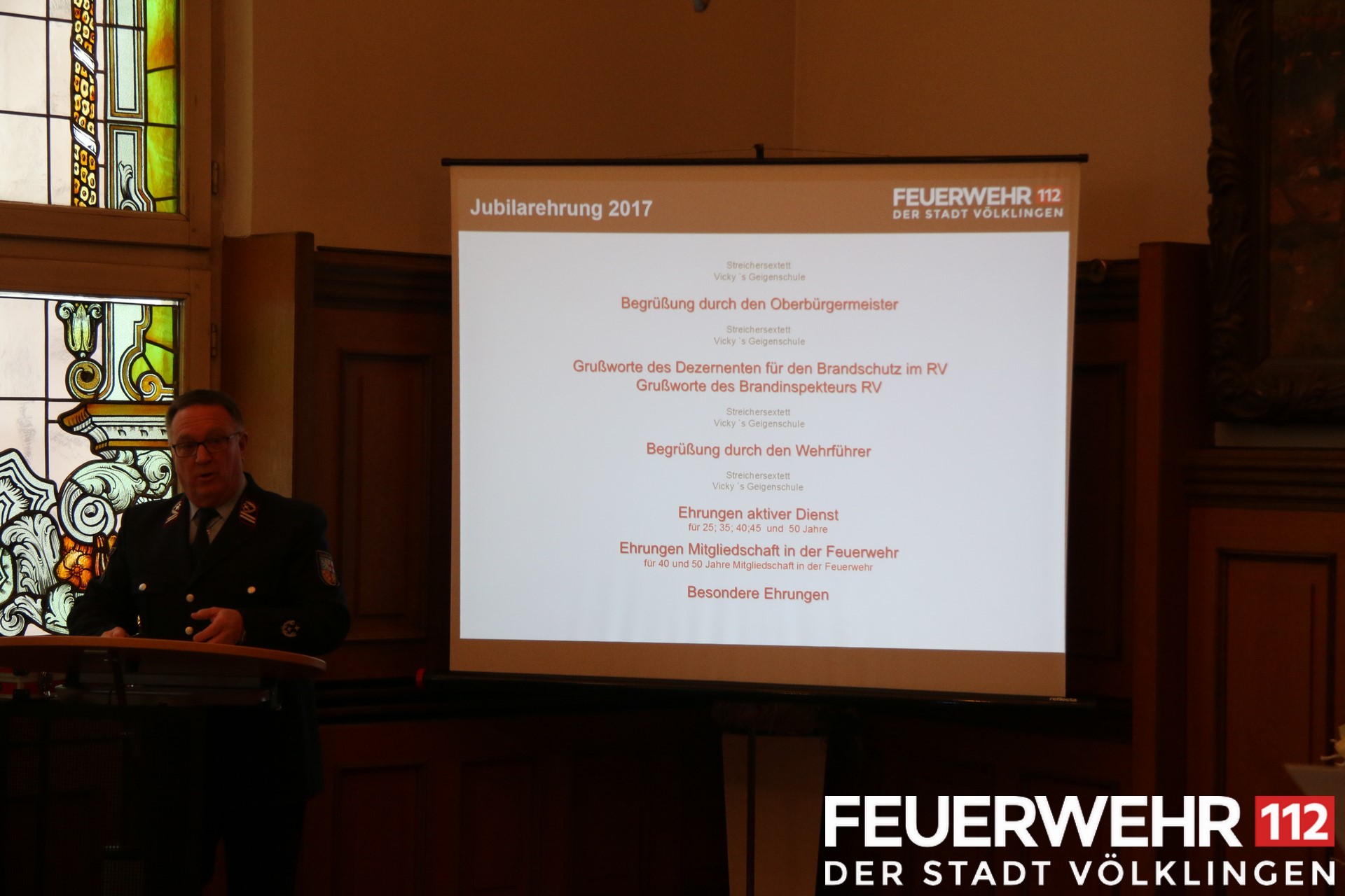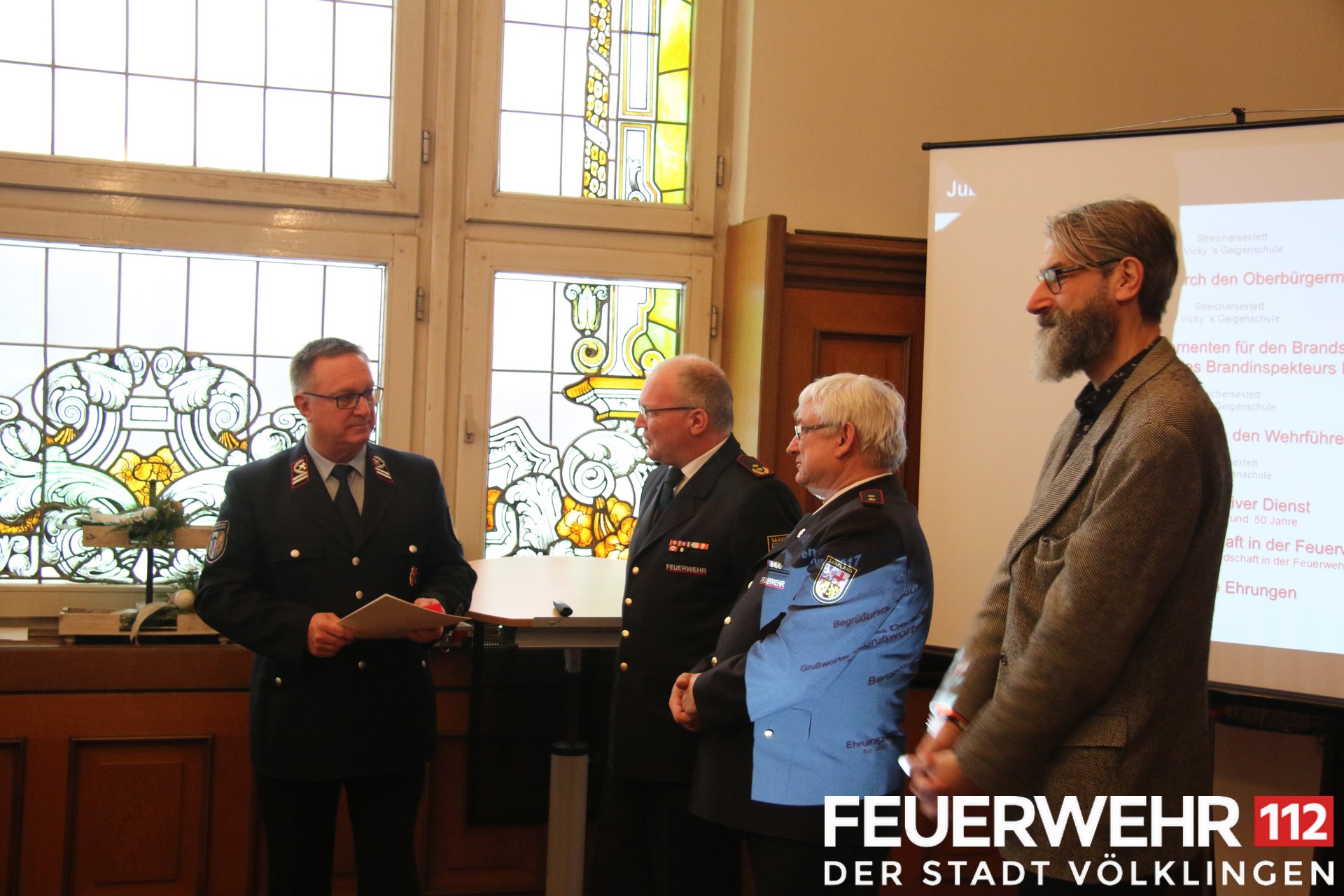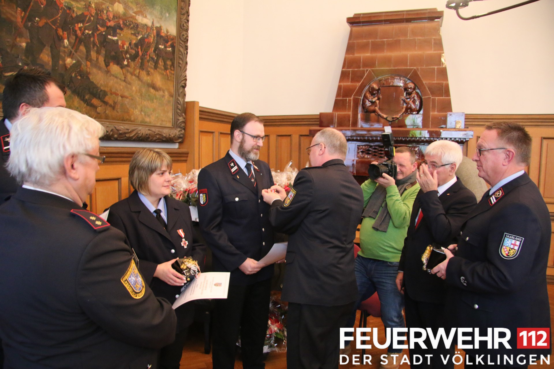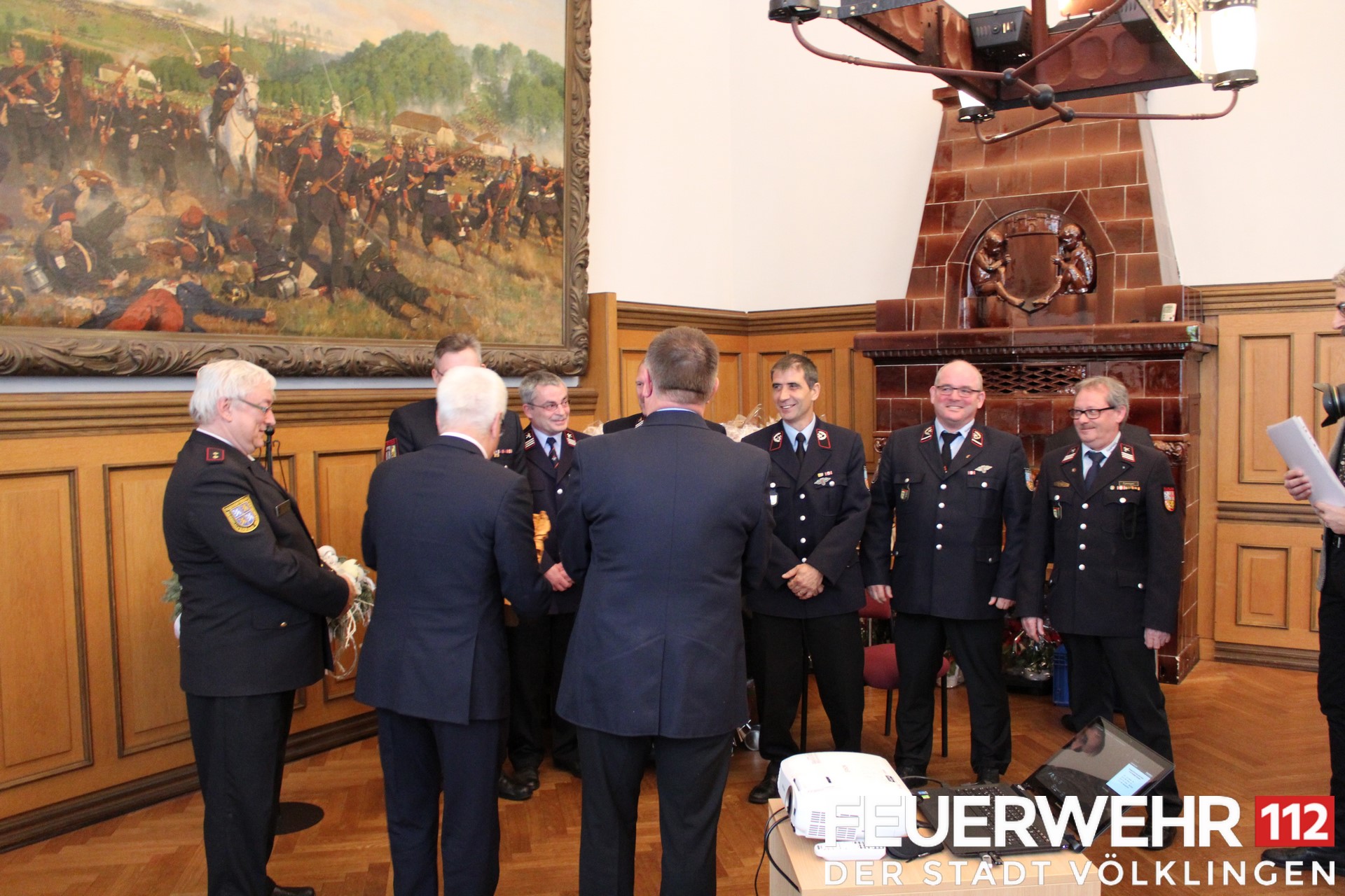 „Vor allem möchte ich Ihnen Danke sagen für die vielen Stunden freiwilliger und ehrenamtlicher Arbeit, die Sie unserer Stadt und unserem Gemeinwesen schenken und geschenkt haben.“ Dies erklärte Oberbürgermeister Klaus Lorig zu Beginn seiner Rede anlässlich der Ehrung langjähriger Mitglieder der Freiwilligen Feuerwehr der Mittelstadt Völklingen. Die Ehrung fand im historischen Sitzungssaal des Alten Rathauses statt.