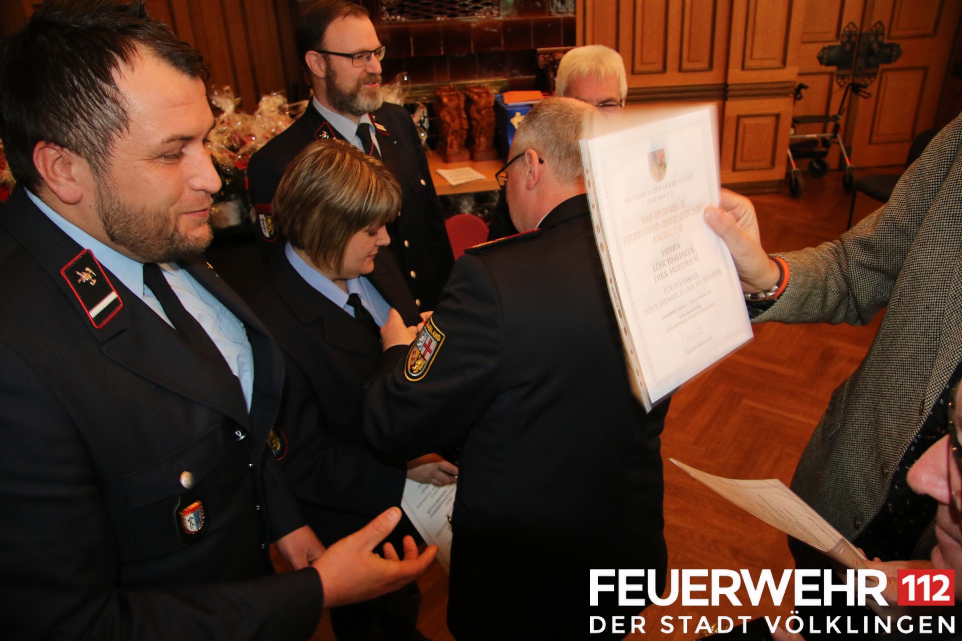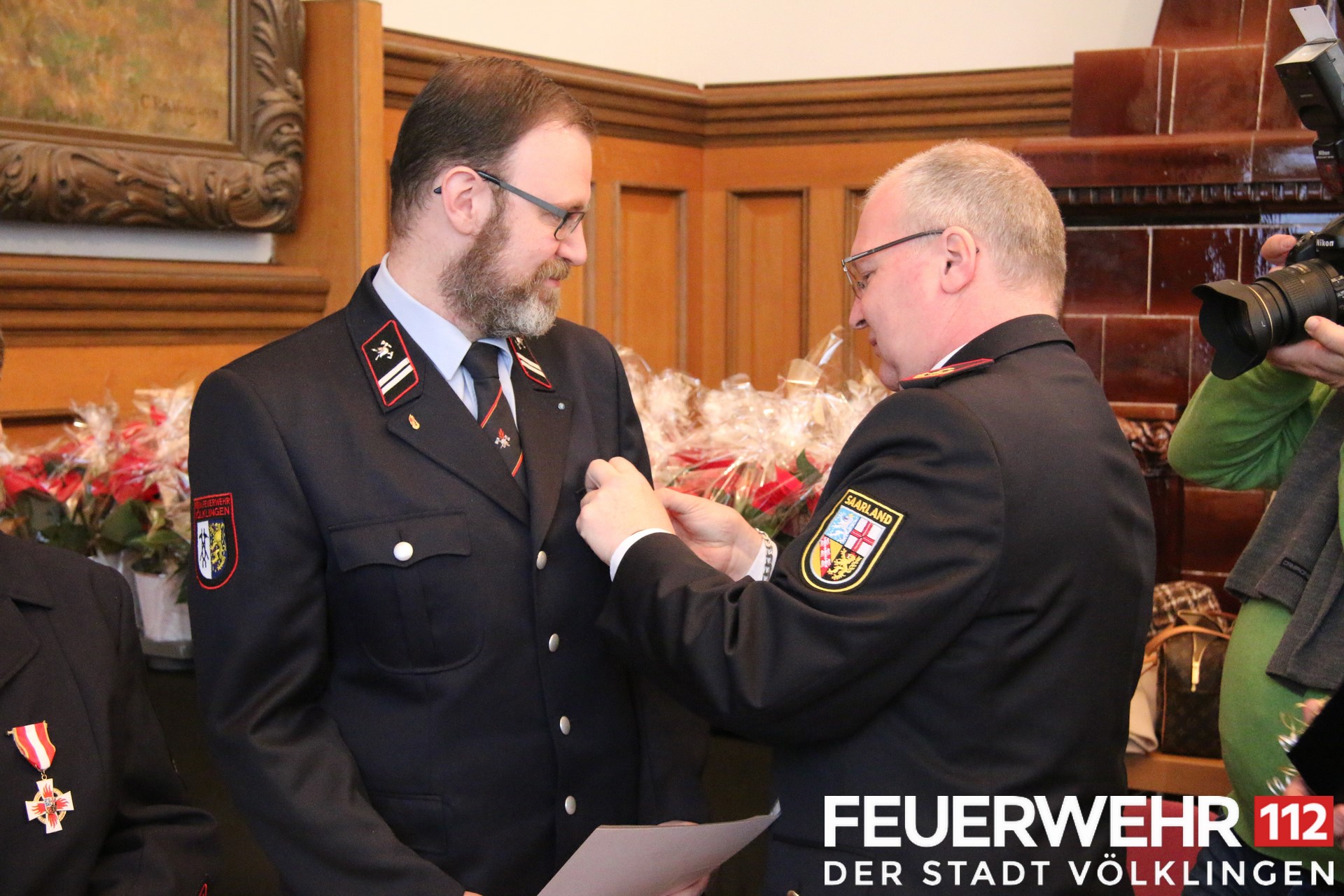Als besondere Auszeichnung wurde Wehrführer Herbert Broy durch den Präsident des Feuerwehrverbands für den Regionalverband Saarbrücken Thomas Quint, das Deutsche Feuerwehrehrenkreuz in Gold verliehen.