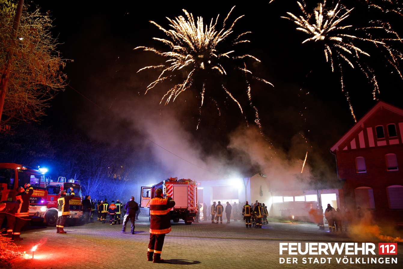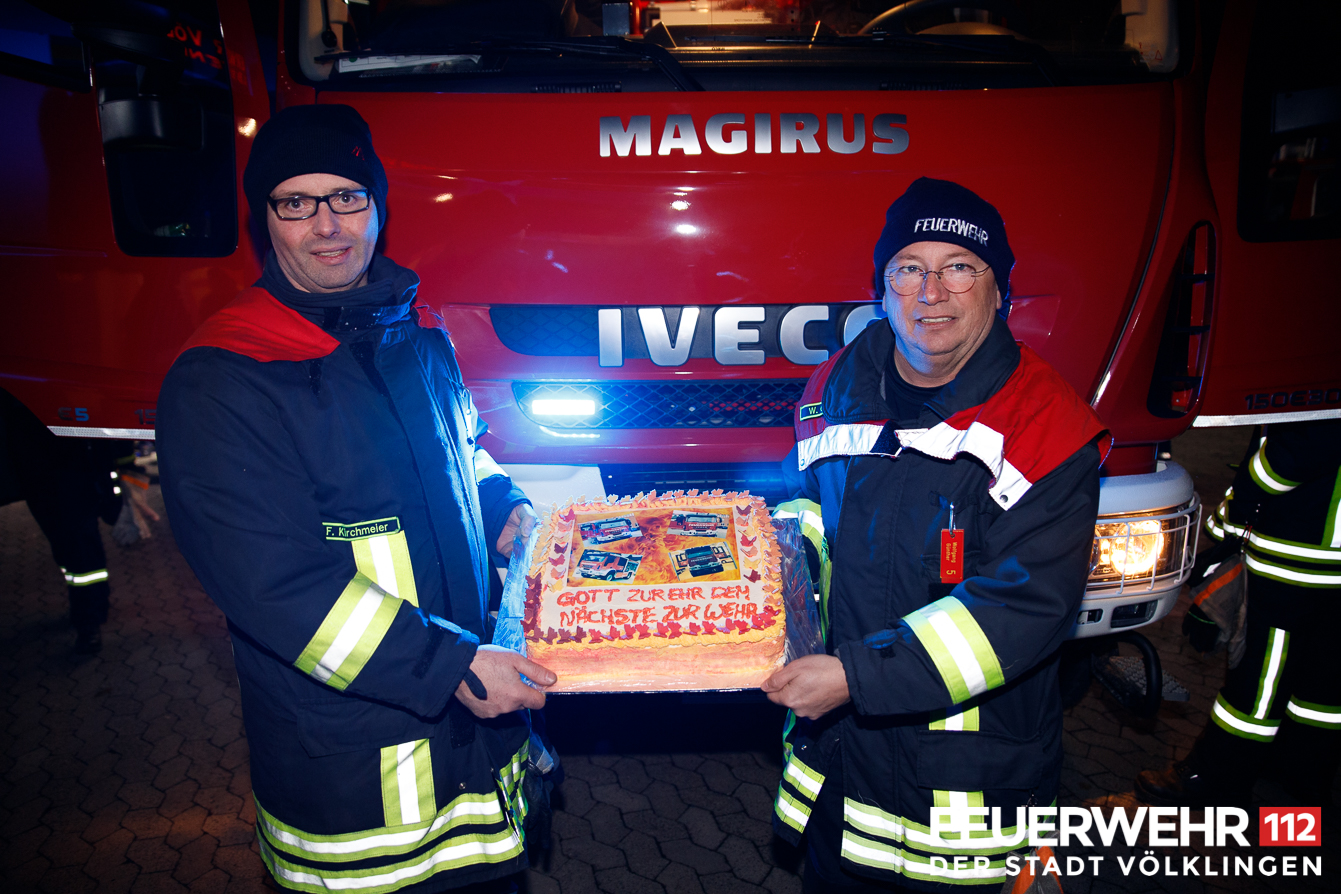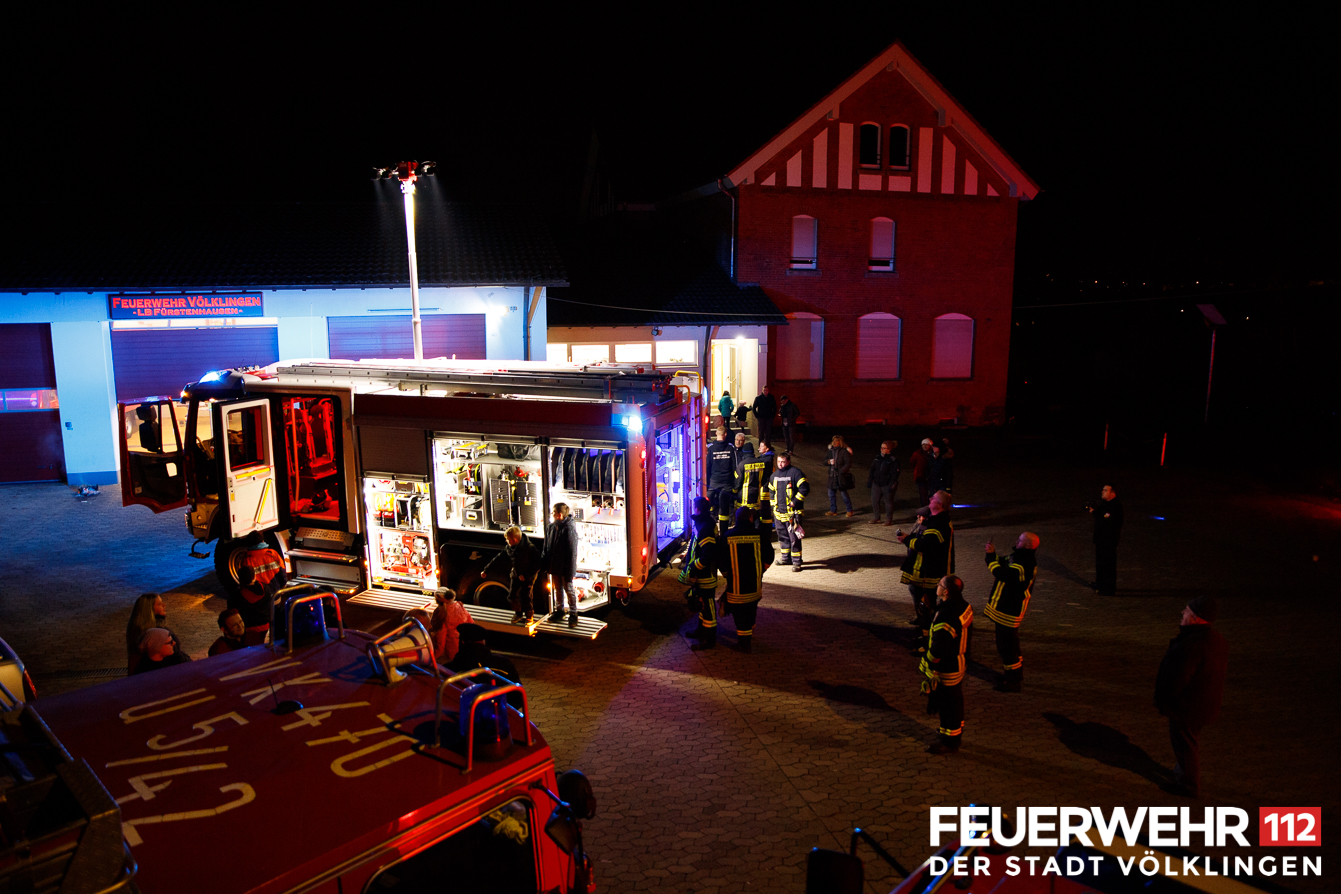 Mitglieder der Löschbezirke Wehrden und Fürstenhausen, sowie die Wehrfühung, hauptamtliche Gerätewarte und Sachbearbeiterin bei der Übergabe der beiden Fahrzeuge für die Feuerwehr Völklingen. Diese kamen am Mittwoch gegen 20:00 Uhr in Völklingen an, wo sie von den beiden Löschbezirken in Empfang genommem wurden.