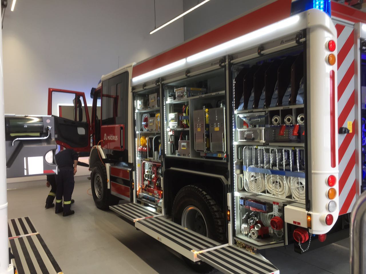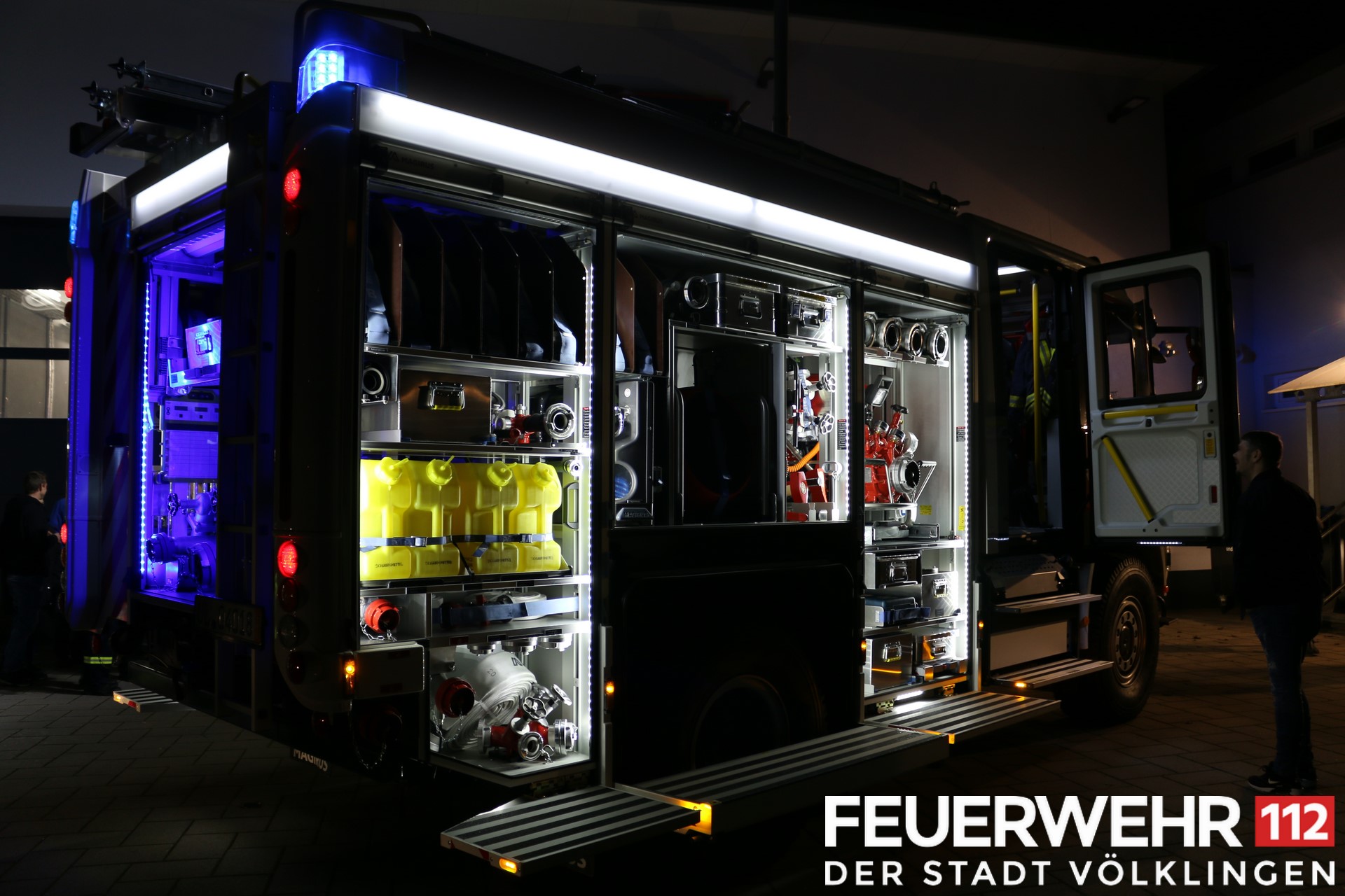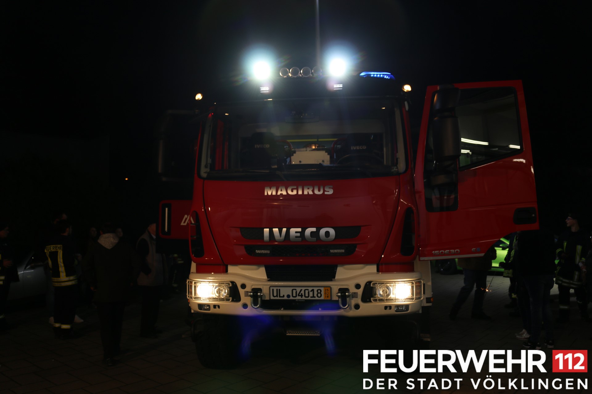 Mitglieder der Löschbezirke Wehrden und Fürstenhausen, sowie die Wehrfühung, hauptamtliche Gerätewarte und Sachbearbeiterin bei der Übergabe der beiden Fahrzeuge für die Feuerwehr Völklingen. Diese kamen am Mittwoch gegen 20:00 Uhr in Völklingen an, wo sie von den beiden Löschbezirken in Empfang genommem wurden.