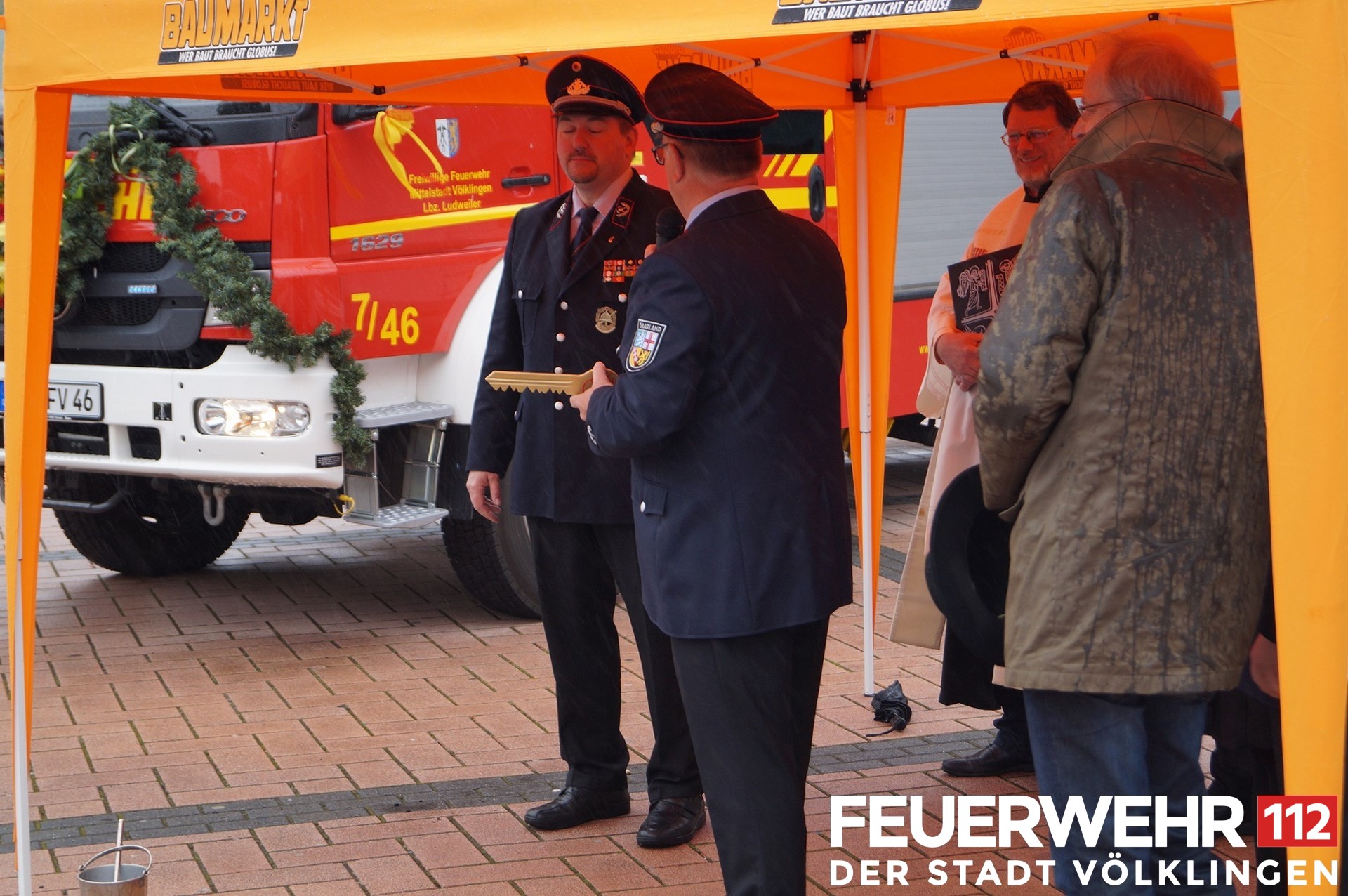 Am Ostermontag (17.04.2017) wurde das neue HLF 20/20 der Freiwilligen Feuerwehr Völklingen im Löschbezirk Ludweiler an den dortigen Löschbezirksführer offiziell übergeben. Vertreter der katholischen und evangelischen Kirche segneten das Fahrzeug. Die Schlüsselübergabe erfolgte von Herrn Bürgermeister Wolfgang Bintz, an den Wehrführer Herbert Broy und dann an den Löschbezirksführer Thomas Roth. Zu dieser Veranstaltung waren auch Vertreter der Parteien anwesend.