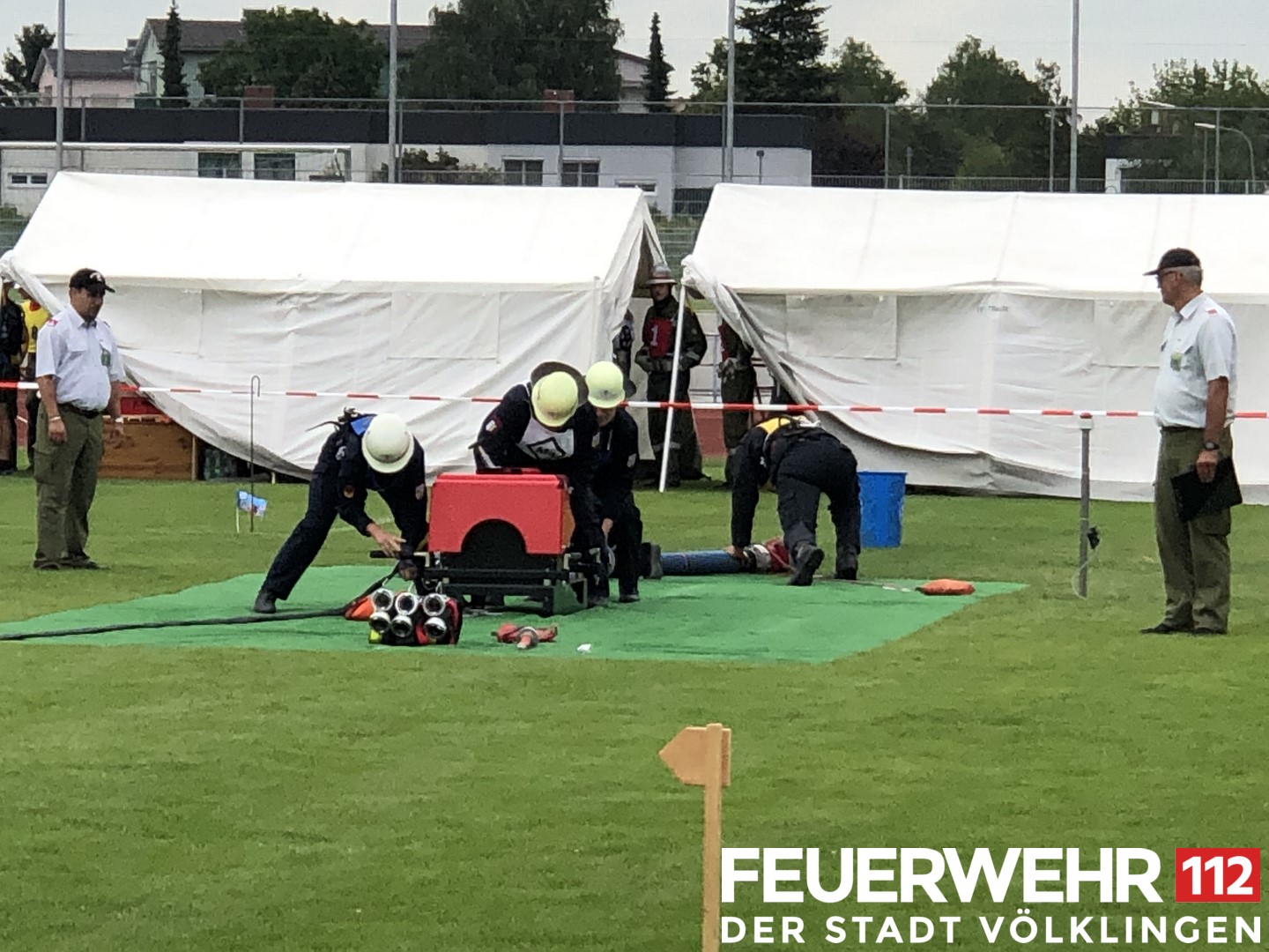 d’extinction du Feu). Diese beinhalten einen Löschangriff mit Wasserentnahme aus offenem Gewässer und der Vornahme von zwei C-Rohren sowie einen Staffellauf.