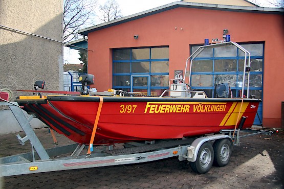 Das MehrZweckBoot (hier Florian Völklingen 3/97) hat vielfältige Aufgabenbereiche. Hierzu zählen die Rettung von Personen, Tieren und Gütern, der Transport von Personen und Gerätschaften, die Erkundung und Überwachung von Einsatzstellen sowie das Absichern der Einsatzkräfte. Das Boot ist mit einem Wasserwerfer für Löscharbeiten vom Wasser aus ausgestattet und verfügt über zwei Suchstrahler am vorderen Teil, mit denen auch bei schlechter Sicht und Dunkelheit das Gewässer abgesucht werden kann. Die Besonderheit bei diesem Boot liegt am abklappbaren Bug. Dieser ermöglicht es, Patienten auf schonendem Weg direkt aufzunehmen.
