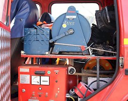 Zur Ausrüstung gehören z.B. Wassersauger mit Zubehör, Tauchpumpe mit Druckschläuchen, Teleskopleiter, Beleuchtungsmaterial und eine Kettensäge.