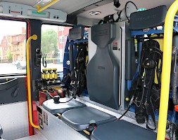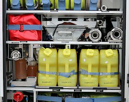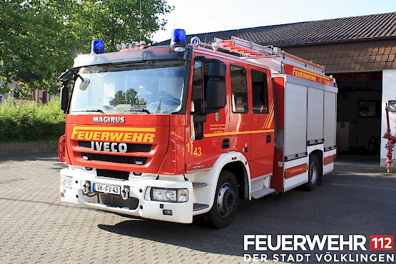 Das Löschgruppenfahrzeug LF 20/16 (hier Florian Völklingen 1/43) dient überwiegend zur Brandbekämpfung, zum Fördern von Wasser und zum Durchführen einfacher Technischer Hilfe. Es hat eine vom Fahrzeugmotor angetriebene Feuerlöschkreiselpumpe FPN 10-2000 und einen Löschwasserbehälter mit einer nutzbaren Menge von min. 1600 l. Es verfügt über eine feuerwehrtechnische Beladung für eine Gruppe und bildet mit seiner Besatzung eine selbstständige taktische Einheit. Die Besatzung besteht aus einer Gruppe (1/8). Das Fahrzeug hat eine zulässige Gesamtmasse von 14.000 kg. Am Heck des Fahrzeugs sind 2 Einmannschlauchhaspeln mit je 6 B Druckschläuchen aufgeprotzt. Zum normalen Martinshorn sind bei diesem Fahrzeug als zusätzliches Sondersignal Bullhörner (Tiefton) montiert.