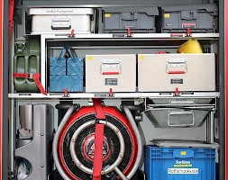 Das HilfeleistungsLöschgruppenFahrzeug 20/16 (hier Florian Völklingen 1/46) ist das Erstangriffsfahrzeug des Löschbezirks Stadtmitte zur Brandbekämpfung und zum Durchführen Technischer Hilfe. Es hat eine vom Fahrzeugmotor angetriebene Feuerlöschkreiselpumpe FPN 10-2000 und einen Löschwasserbehälter mit einer nutzbaren Menge von min. 2000 l sowie ein 200 l Schaummitteltank. Es verfügt über eine feuerwehrtechnische Beladung für eine Gruppe und bildet mit seiner Besatzung eine selbstständige taktische Einheit. Die Besatzung besteht aus einer Gruppe (1/8). Auch bei diesem Fahrzeug sind Bullhörner (Tiefton) als zusätzliches Sondersignal verbaut. Am Heck des Fahrzeugs sind zwei Einpersonenschlauchhaspeln mit je 6x B-Schläuchen aufgeprotzt.