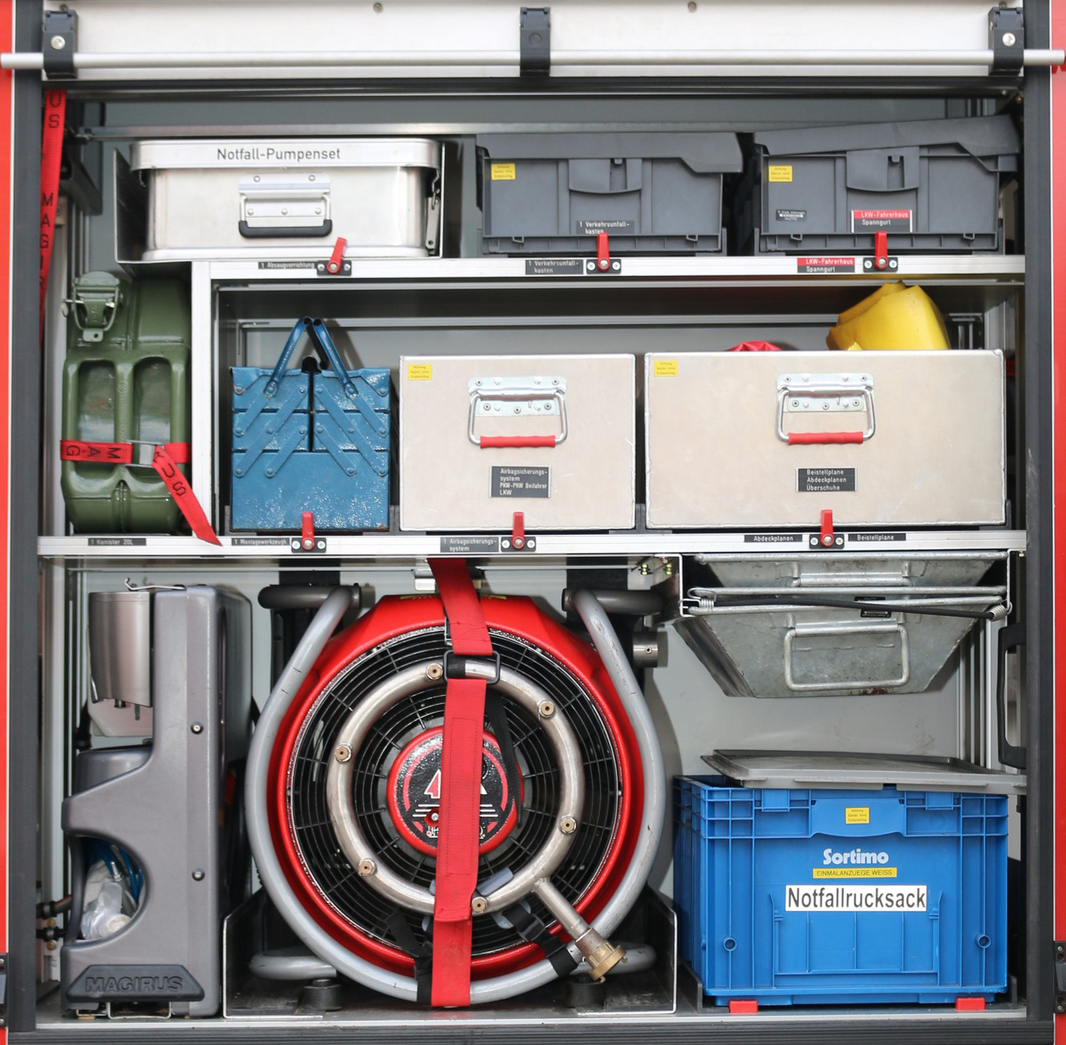 - Koffer „Planen“ rote und gelbe Planen für Verkehrsunfälle (Ordnung des Raums)