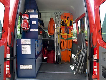 - schwimmfähiges Spineboard mit Gurtsystem