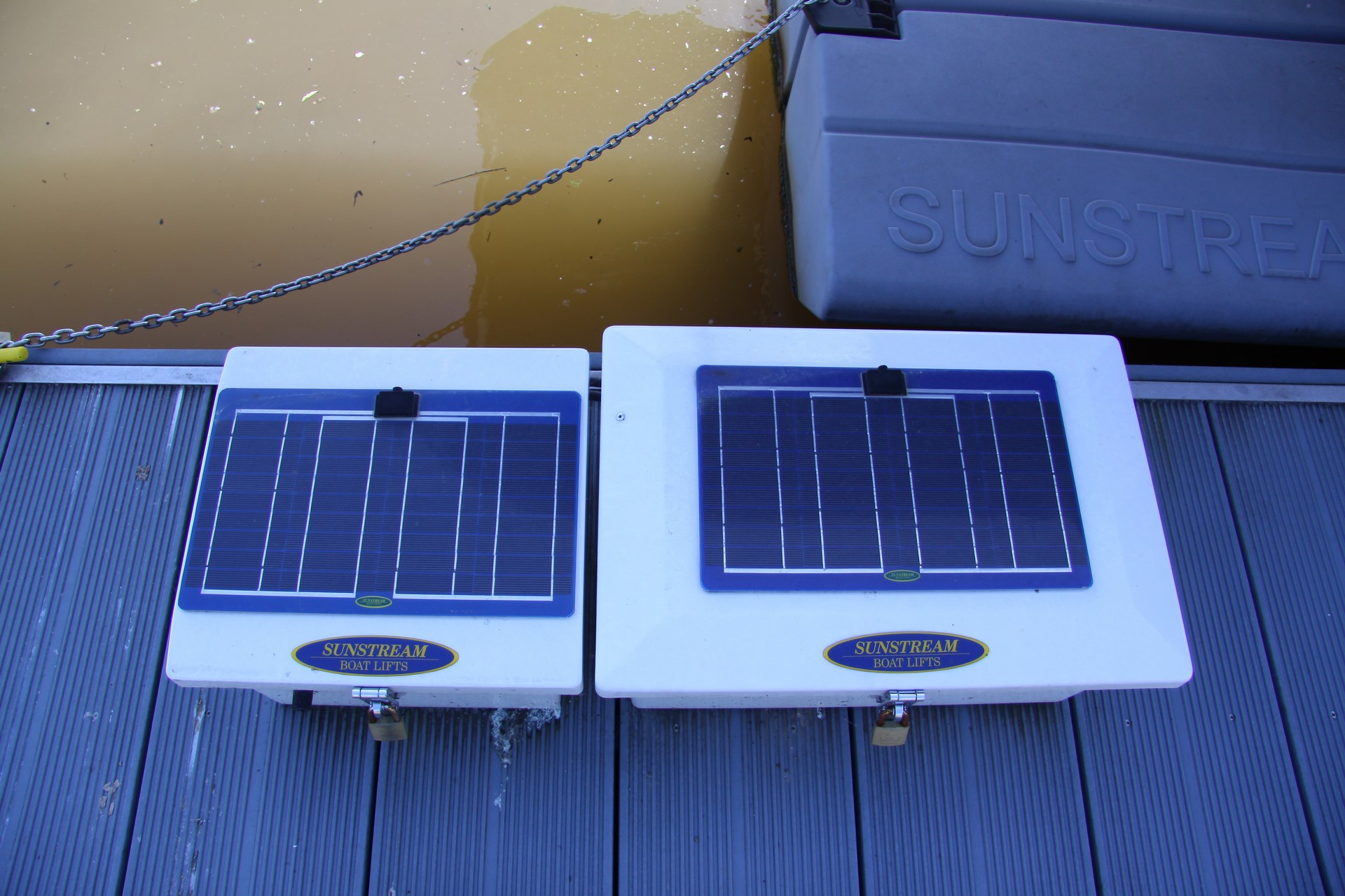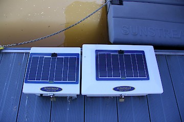 Die Energieversorgung des hydraulischen Bootsliftes wird durch eine Solaranlage mit Pufferbatterie sichergestellt.