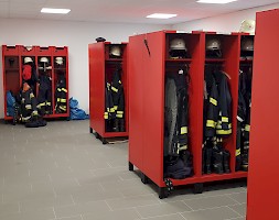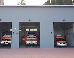Die Fahrzeughalle verfügt über drei Stellplätze für Löschfahrzeuge und ein feuerwehrtechnisches Lager. Die Stellplätze sind nach den neuesten Vorschiften in Bezug auf die Abmessungen gebaut. Auch verfügen alle Plätze über eine Dieselemissions - Absauganlage.