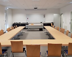 Im ersten Obergeschoss befinden sich neben dem Schulungsraum, die Küche, ein Abstellraum und weitere Toiletten.