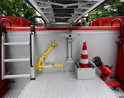 Die Drehleiter DLK 23/12 (hier: Florian Völklingen 7/31) dient vornehmlich zum Retten von Personen. Hierzu kann zusätzlich eine Trage am Leiterkorb befestigt werden, um Personen schonend transportieren zu können. Weiterhin kann sie zum Löschangriff von Außen in den Einsatz gebracht werden. Dafür kann ein Wasserwerfer am Korb montiert werden um Brände großflächig von oben löschen zu können. Vom Korb aus können Einsatzkräfte hoch gelegene Stockwerke erreichen um so durch Fenster oder Balkone in das Gebäude eindringen zu können.