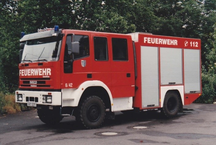 ein LF 8 (Löschgruppenfahrzeug) mit einer Besatzung 1/8 (ein Gruppenführer und 8 Mann Besatzung), Baujahr 1994, mit eingebautem 800 L-Wassertank,