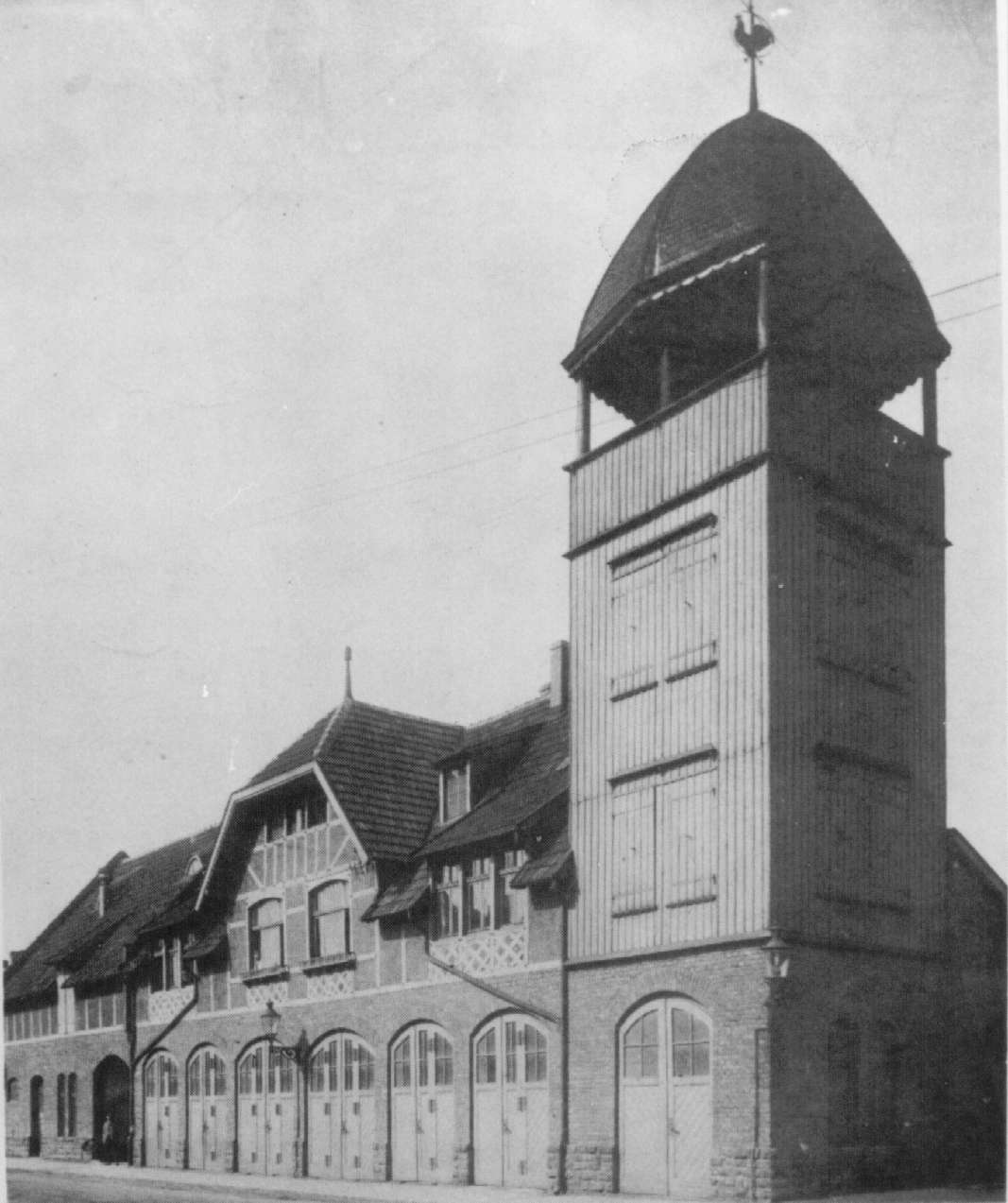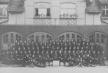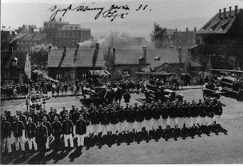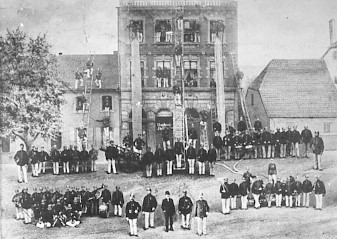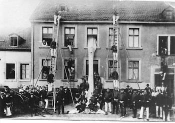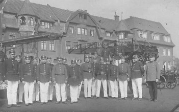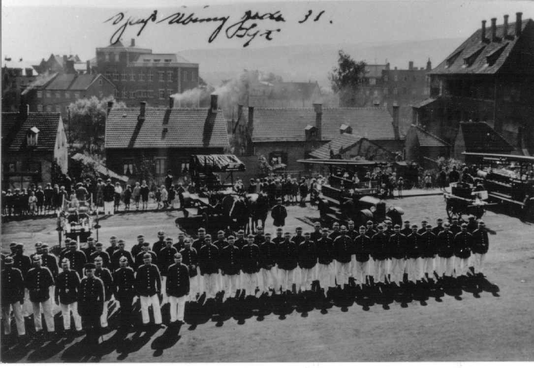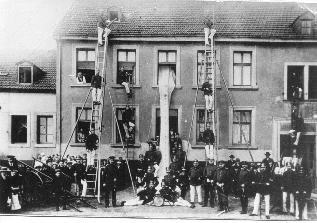 Die Alarmierung des Löschzuges, der aus der Steiger-, Wasser-, Rettungs- und Spritzenabteilung bestand, erfolgte durch den Trompeter.